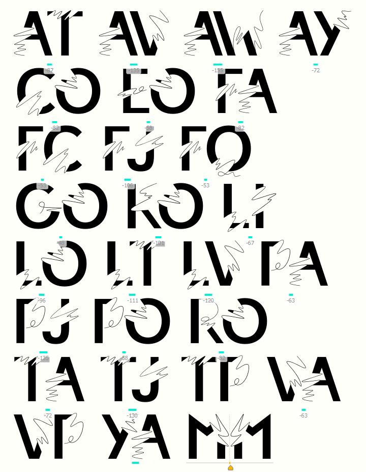 Finalmente vamos específicamente a pares de letras cuyo espaciado es conflictivo, que suelen ser letras con diagonales, como la V, W, Z, A... o con mucho aire, como la L, T, P, F, J, f...