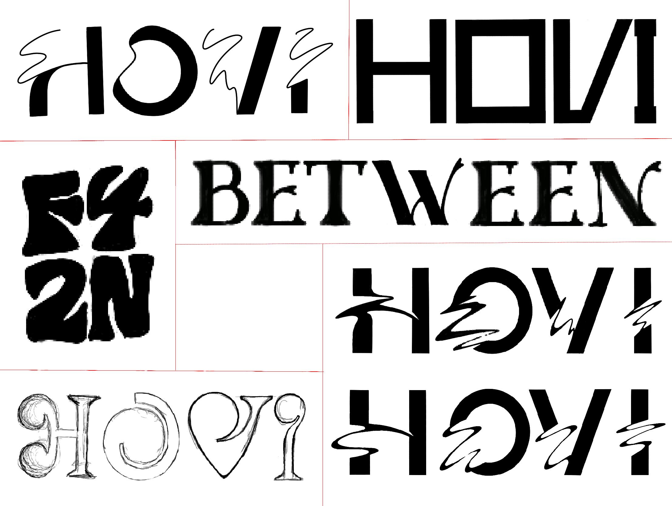 Comencé haciendo una búsqueda tipográfica a través de distintos bocetos de la palabra HOVI, porque tenía muchas ideas para este proyecto.