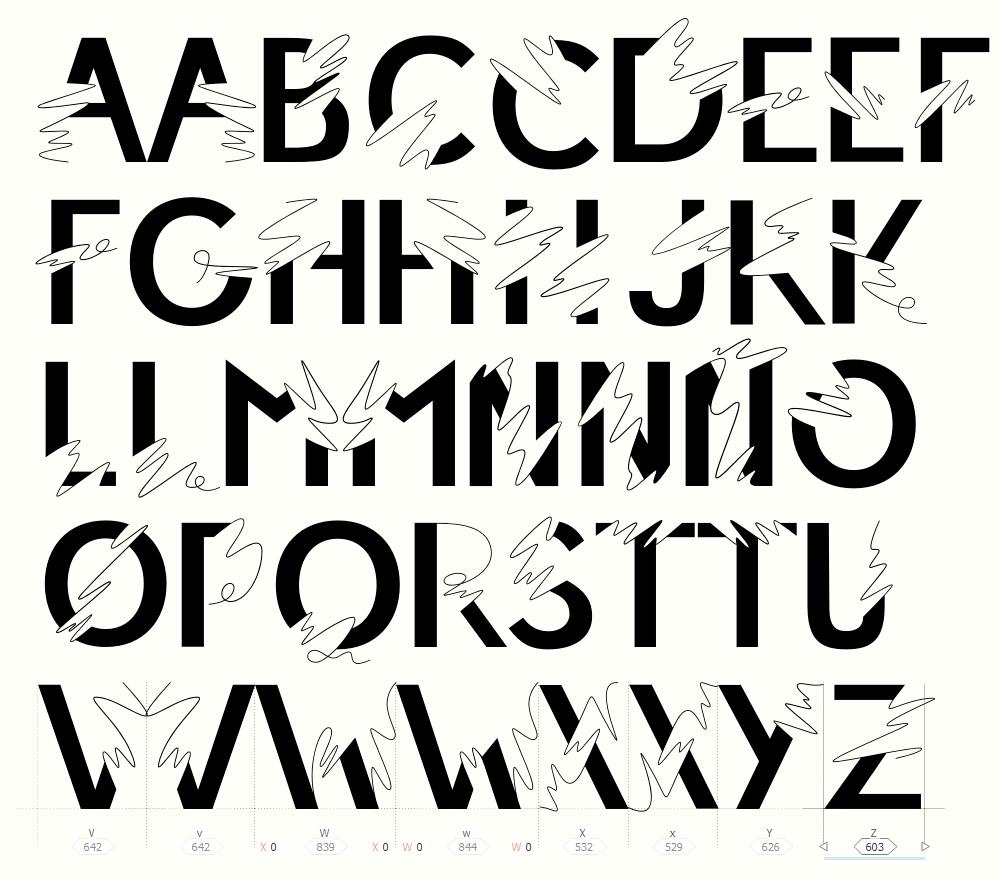 Lo primero tras importar todos los caracteres a fontlab es ajustar el espacio entre letras.