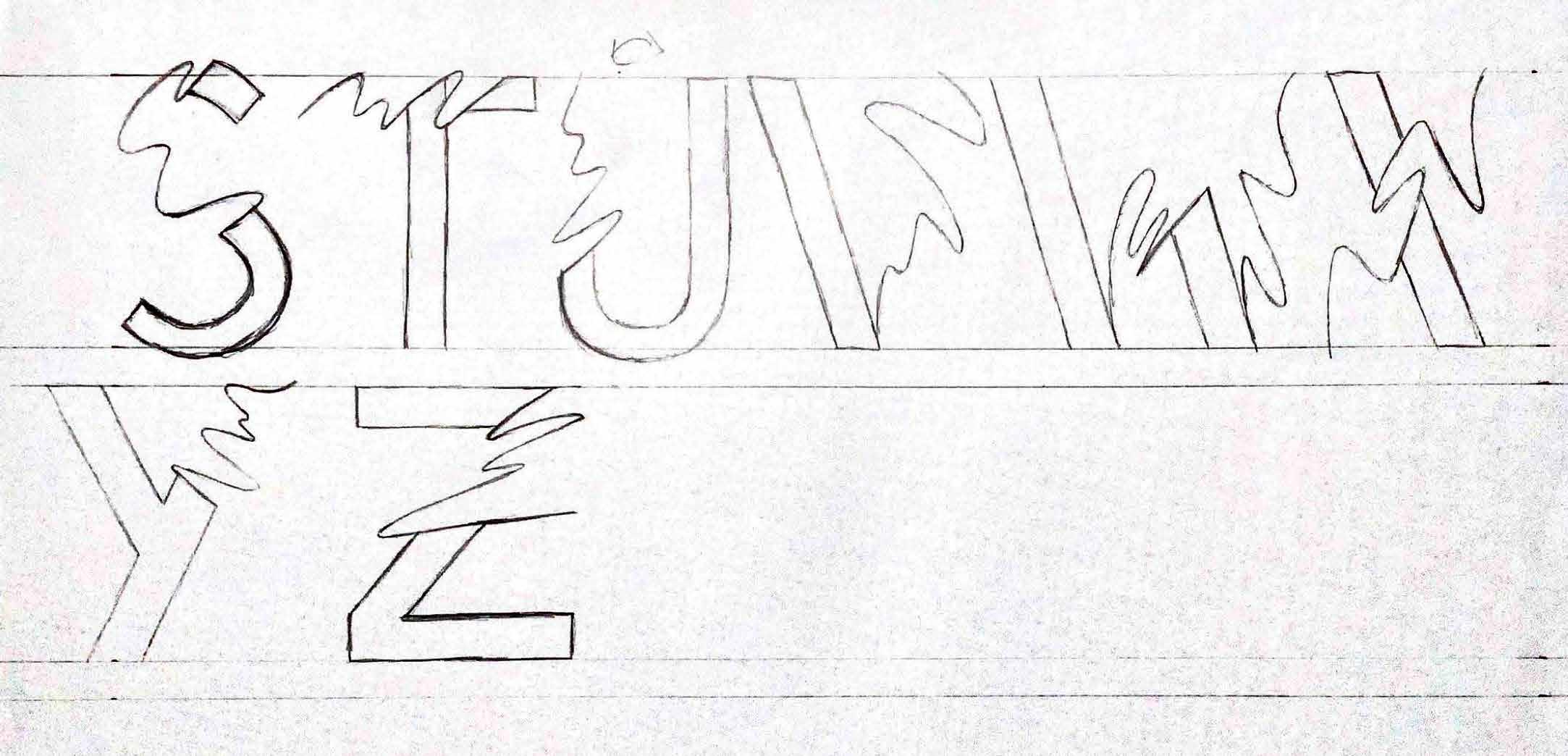 En este caso la tipografía es exclusivamente en caja alta, por lo que comenzamos por el boceto de HOVI