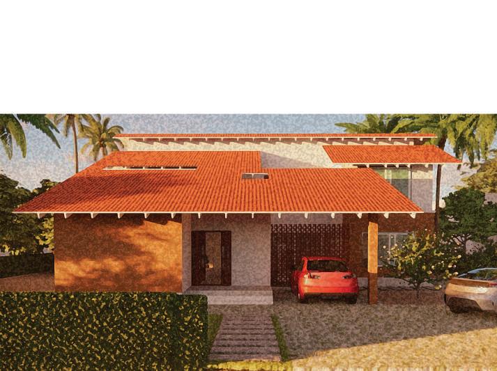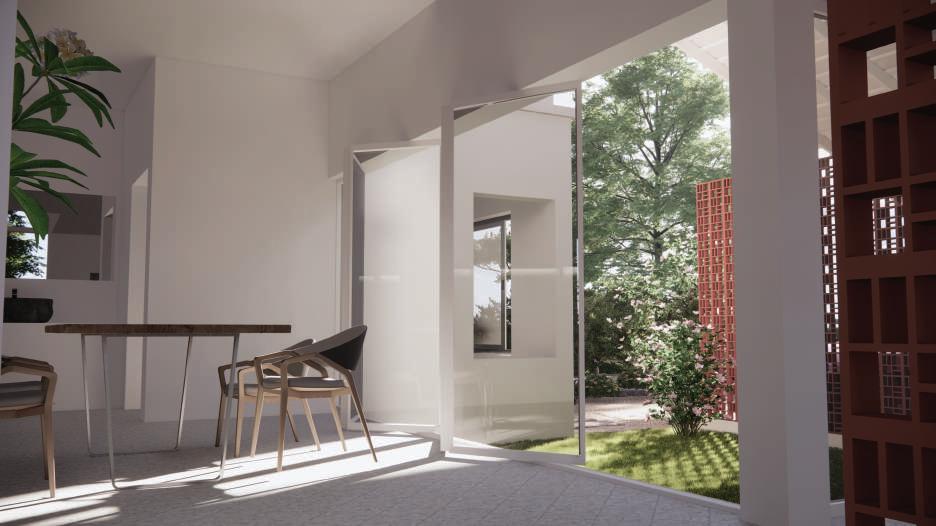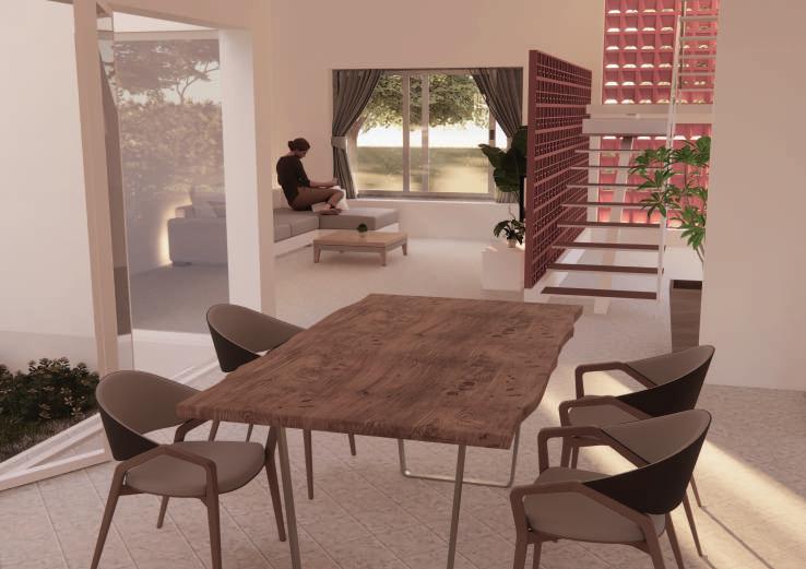 An open design is adopted giving most importance to privacy. The spaces are arranged around a coutryard with the public zones towards the side of the access road and private spaces inward.