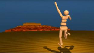fuerza de gravedad, condiciones espaciales, de masa y de velocidad, a la vez que se le fueron creando distintos obstáculos. Vemos en el video como el personaje avanza hasta tropezarse y caer, en ese momento vuelve a iniciar automáticamente desde el principio. De esta manera, se realizan tantos intentos automáticos que podemos ver al personaje caminar de una manera similar a la que lo hacemos los humanos, sin jamás haberle mostrado una manera de caminar. Se lo puede observar correr, saltar, agacharse y demás.