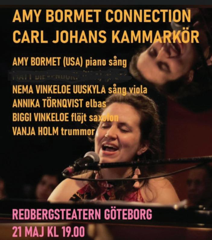Our time with Amy Bormet was a wonderful experience. Most exciting was performing with 13 musicians on stage! Amy and I have been working together since 2016, when we founded the Harold Trio with drummer Tina Raymond. We met in Sweden, Los Angeles, and in Washington D.C., for performances and workshops. We recorded two albums and had several radio shows together.