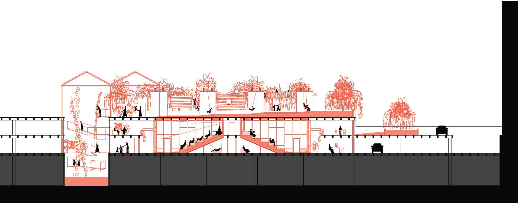 Basement Floor Level Second Floor Level First Floor Level Ground Floor Level Third Floor Level EXISTING NEW REMOVED 1 2 3 4 5 Supermarket Bakery Courtyard Lecture Halls Film Library -1 Auditorium 0 Computer Labs Outdoor Auditorium Book Library Beauty Spa Garden Cafe Outdoor Art Space Art Galleries Housing 8 9 10 11 12 6 7 Lecture Halls Viewing Patios Art Studios Music Studios Rooftop Restaurant 13 14 15 16 17 plans 20 a walk in the park