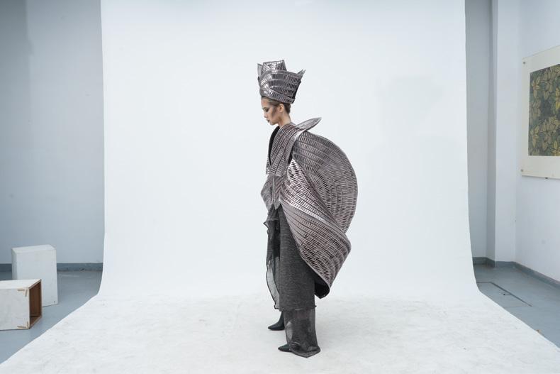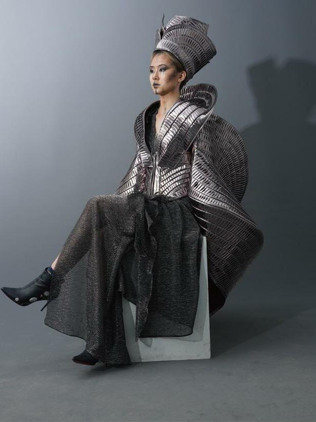 The textures and patterns from this dress is inspired by the Agora Garden, a soon-to-be design landmark in Taipei. Agora Garden is renowned for its representation of timeless eternity, which my dress symbolizes as well. In light of the pandemic, I also incorporated aspects of surgical/medical tools in creating the metallic finish of this dress.