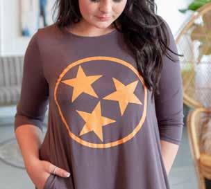 TN Sack Dress TN GIRL TUNIC $39 Cotton. Machine Wash. UT Orange and heather grey. Sizes XL, 2XL, 3XL The Tri-Star Collection is here!
