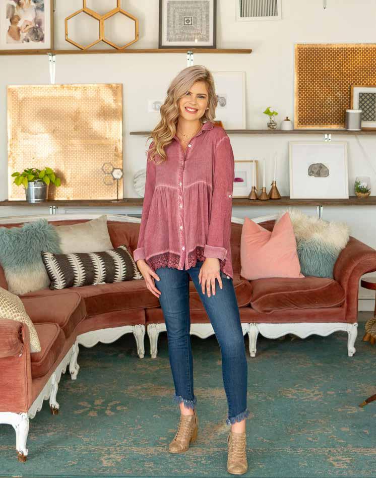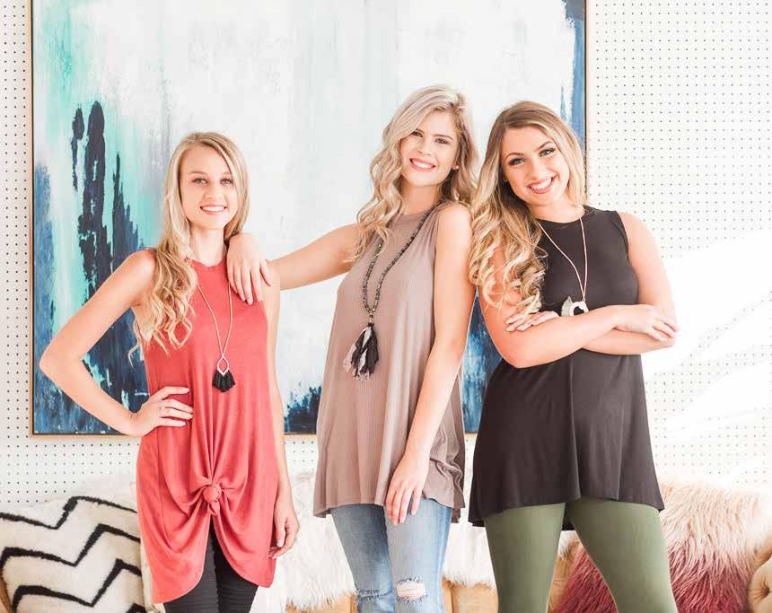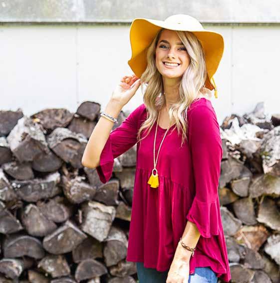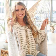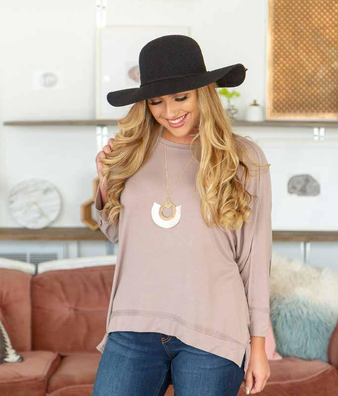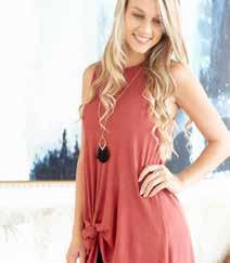 Organic cotton/nylon/ spandex. Machine wash. Imported. Totally taupe (pictured). Sizes S, M, L, XL Organic cotton/nylon/ spandex. Machine wash. Imported. eclipse (pictured). Sizes S, M, L, XL SIMPLY SLEEVELESS Organic cotton/nylon/ spandex. Machine wash. Imported. coral (pictured). Sizes S, M, L, XL $29$29 $29 TIED UP TUNIC B&C NECKLACES Handcrafted by local artisan. Nickle free. 40” L $19 B C SIMPLY SLEEVELESS