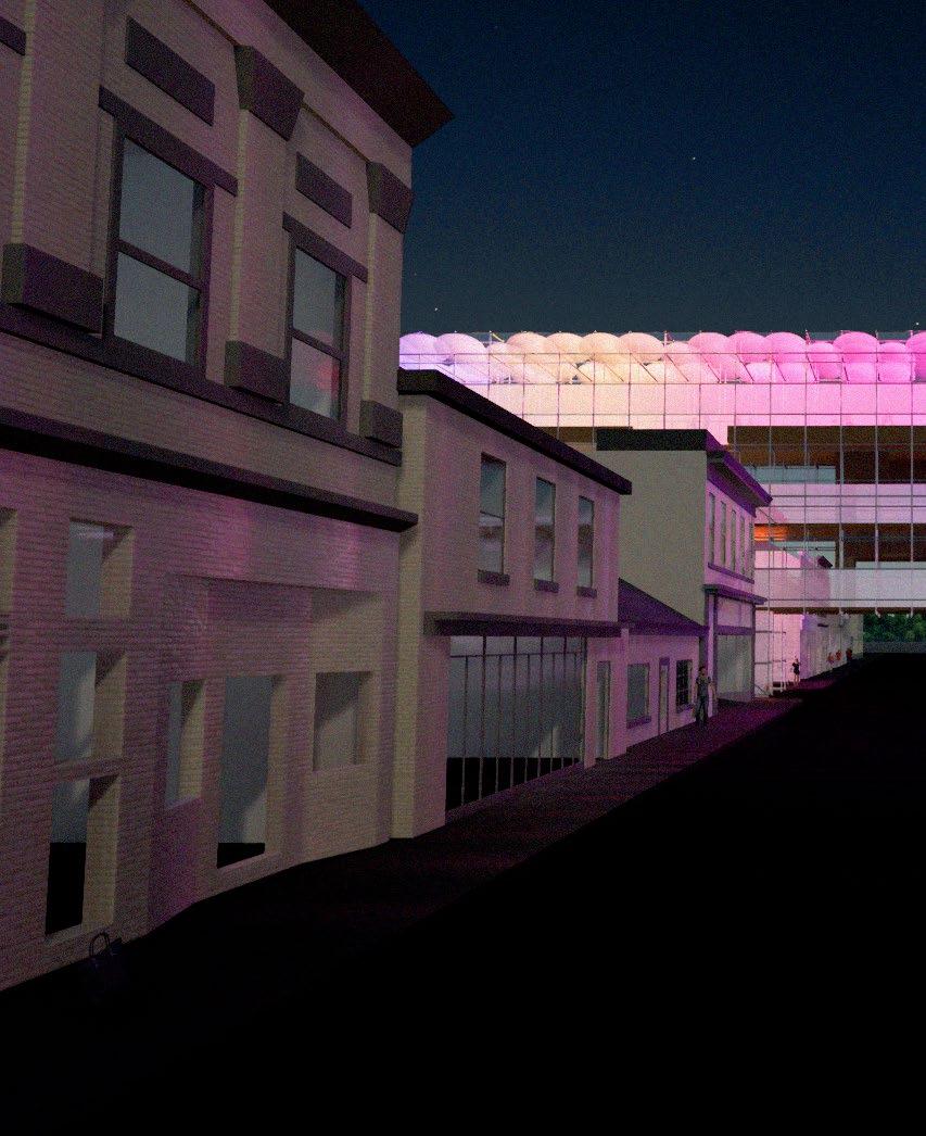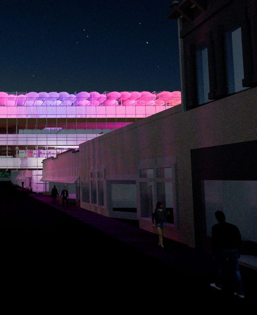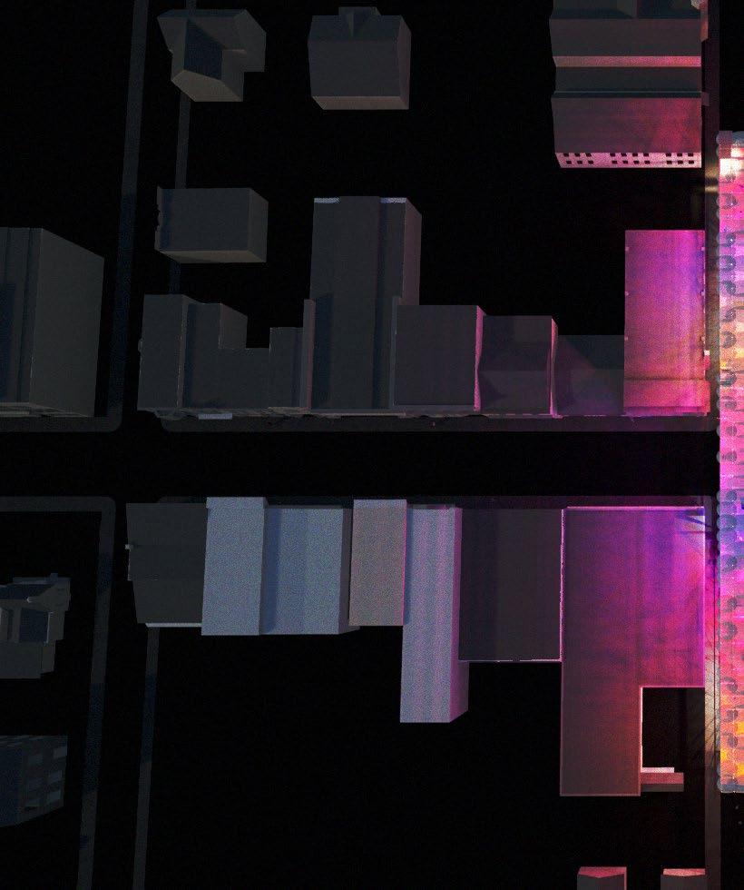 The project creates a unique experience for small towns across the United States that can be placed temporarily within a street intersection. The temporary location is located in Paris, KY. A small town in Kentucky with a population of about 9,500 people. There are plenty of things to do in the Shrimp, such as dining, drinking, nightlife, and relaxation. The name “Shrimp”, is inspired by a bioluminescent shrimp since the internal system illuminates the body and is visible through the exoskeleton, such as the project. The picture below is an example of the interactive inflatable lights when in use. The civic stimulator allows a community to come together and enjoy a night out.