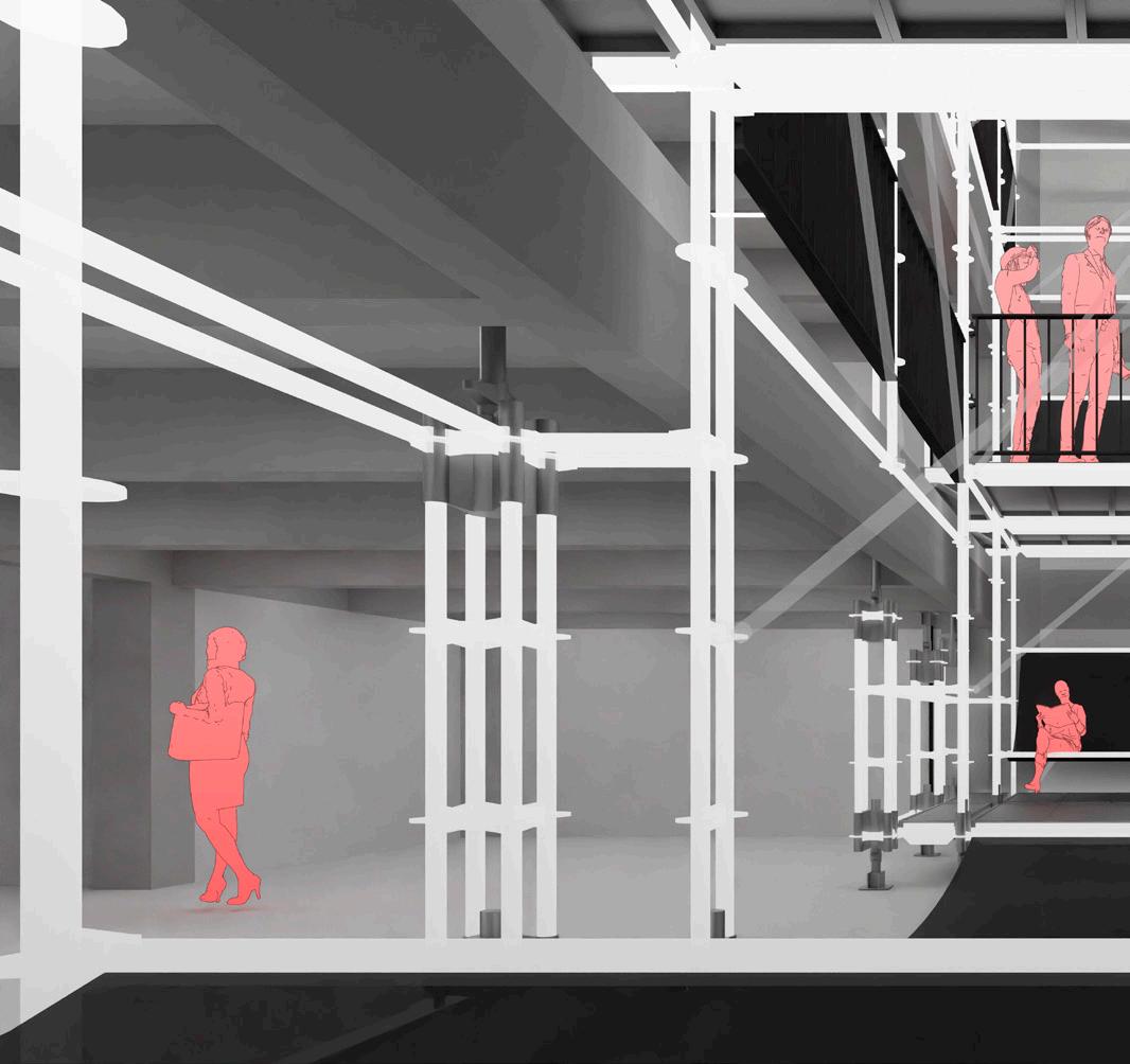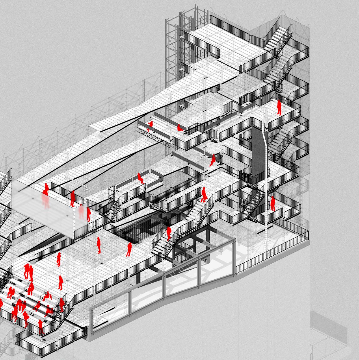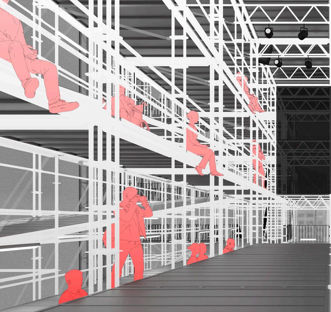 Elegendo São Paulo como seu objeto de estudo, cidade a qual abriga várias das discussões realizadas nos capítulos anteriores, a estrutura explora os espaços urbanos que a definem, não os seus edifícios históricos e consolidados, mas as empenas cegas, os lotes vazios, os estacionamentos e as coberturas de edifícios que verdadeiramente compõem a paisagem da cidade. Efêmera, a estrutura aceita que o seu destino é acabar, porém confiante que a sua breve passagem será capaz de deixar marcas. Marcas essas invisíveis, correspondentes às memórias das atividades lá realizadas. Uma arquitetura criada coletivamente, que reconhece ser apenas o suporte para as ações das pessoas, essas sim as quais serão verdadeiramente responsáveis por impactar o futuro da cidade existente. Uma nova ocupação contra o novo normal anunciado.