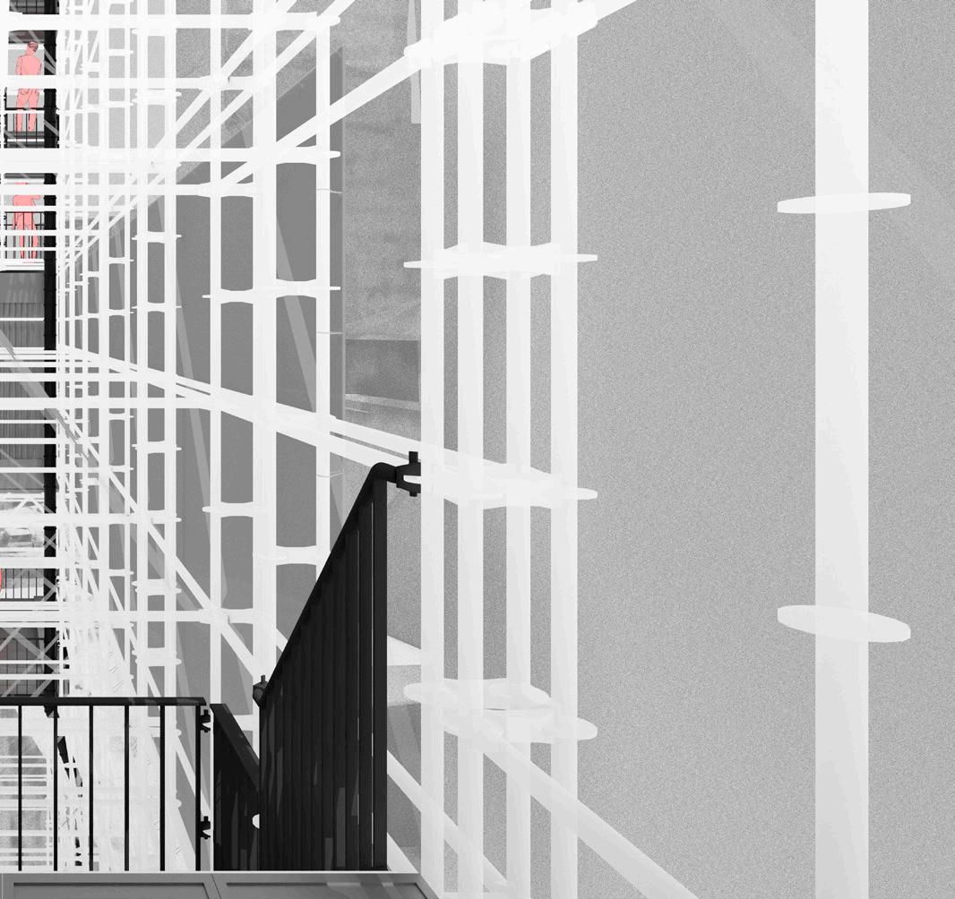 a popularização da internet tenha seu lado positivo, democratizando o acesso à informação e dando voz a grupos de baixo poder econômico e social, ela também inaugura realidades paralelas, não apenas por ser alheia ao mundo físico, mas por criar e sustentar narrativas próprias baseadas em interesses políticos. Os conflitos sociais, os quais antes eram mediados no espaço público, agora, em sentido contrário, são intensificados pelo virtual. O debate público morreu. O retorno ao real se mostrou imprescindível. Contudo, esse processo não pode ignorar que o mundo atual é diretamente influenciado pela sua camada digital. Reconhecendo os temas abordados, o terceiro capítulo tenta enxergar como a arquitetura pode refletir a condição contemporânea da cidade. A arquitetura que deseje preservar sua memória deve assumir que ela se constrói e modifica ao longo do tempo, tornando-se suporte do cotidiano e do imprevisível. Efêmera, ela deverá responder às demandas imediatas da população, atuando sobre o pré-existente enquanto incorpora a mudança como a sua razão de ser. Nesse sentido, os andaimes representam o passageiro na paisagem urbana. Estrutura temporária, o andaime é sinônimo do processo de construção, daquilo que está por vir, aparecendo momentaneamente e sumindo sem deixar rastros de si mesmo, apenas daquilo que ele ajudou a construir.