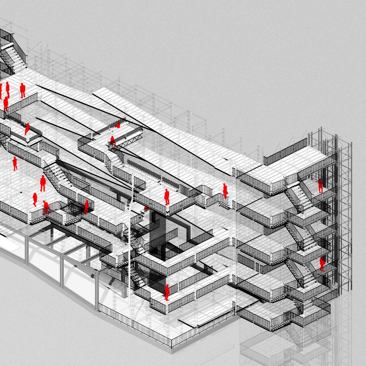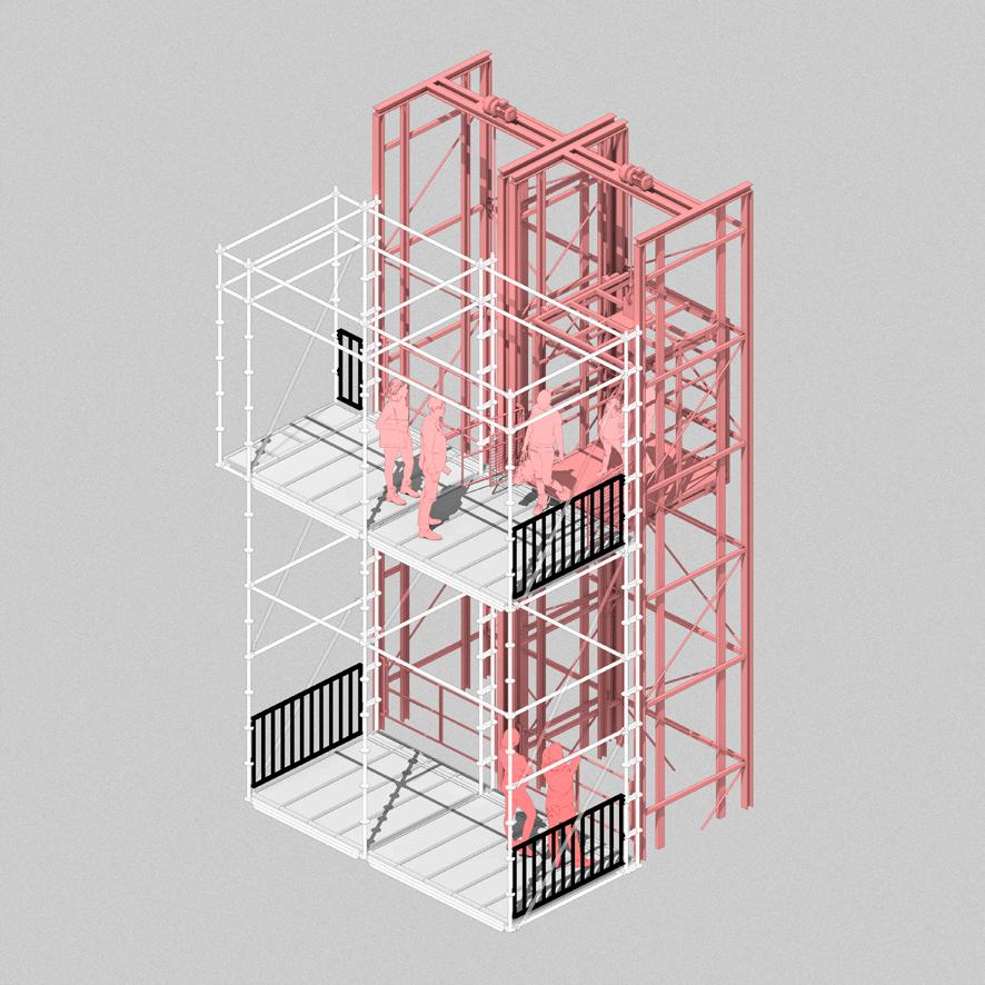 O novo normal se anuncia: processo agravado pela pandemia, a vida migra para o digital. Porém esse é apenas o ápice do abandono histórico dos espaços públicos em prol da experiência privada. A própria arquitetura se virtualizou: o capitalismo tardio almeja cada vez mais a atualização constante, traduzida pelos centros comerciais projetados para abrigar usos temporários e sem relação entre si e a cidade. Reconhecendo essa situação, a arquitetura que deseje preservar sua memória deve assumir que ela se constrói e modifica ao longo do tempo, tornando-se suporte do cotidiano e do imprevisível. Efêmera, ela deverá responder às demandas imediatas da população, atuando sobre o pré-existente enquanto incorpora a mudança como sua razão de ser. Nesse sentido, os andaimes representam o passageiro na paisagem urbana. Estrutura temporária, são sinônimo do processo de construção, aparecendo momentaneamente e sumindo sem deixar rastros de si mesmos, apenas daquilo que ajudaram a construir. Refletindo sobre dois anos de isolamento social, quando o espaço público foi substituído pelo virtual, o projeto propõe uma ocupação da cidade de São Paulo no contexto pós-pandêmico, explorando seus espaços residuais como empenas cegas, terraços e lotes sem função social. Entendendo esses elementos como traços definidores da cidade e, desta forma, parte de sua memória, o projeto se apropria deles e os devolvem à população. Assumindo os andaimes como linguagem, o projeto se ergue como uma estrutura temporária, criando espaços que potencializem as ações cotidianas de seus usuários. Aqui, a arquitetura não busca o protagonismo, reconhecendo que um dia ela desaparecerá sem rastros, deixando para trás apenas as memórias das pessoas que a ocuparam.