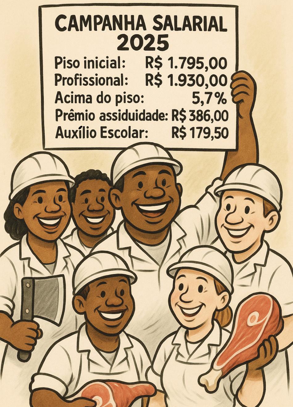 BOLETIM DOS TRABALHADORES EM EMPRESAS DE ABATE ANIMAL NO ESTADO DA BAHIA. Sede Própria: AV. Estados Unidos, 397 - Edf. Cidade do Salvador 4° Andar - Sala 409 - Comércio - Salvador-BA: (71) 3241-0533. Subsedes: Alagoinhas-BA - Rua 2 de Julho, 122. Tel (75) 3422-5247. Barreiras-BA - Rua Marechal Deodoro, 903, Centro. Tel (77) 3611-7621. Feira de Santana-BA - Rua Fernando Ferrari, 660-Brasília. Tel (75) 3614-5758. Itapetinga-BA - Rua Santos Dumont, 44 - Sala 03. Tel (77) 3262-1859. Jequié-BA - Rua Costa Brito, 73. Tel (73) 3525-6492. Luiz Eduardo MagalhãesBA - Rua Irará, 3546, Santa Cruz. Tel. (77) 3628-5170. Santo Antônio de Jesus-BA - Av. Luis Viana, 78, Centro. Tel (75) 3631-6013. Serrinha-BA - Rua Macário Ferreira, 95, Centro. Tel (75) 3614-5758. Texeira de Freitas-BA - Praça Caravelas. s/n. Tel (73) 3291-5636. Vitória da Conquista-BA - Rua Travessa dos Artistas, Nº 02, sala 201, segundo andar do Edifício Rancho Alegre Bairro Centro. CNPJ: 34.282.673/0001-01. Todas as matérias são de inteira responsabilidade da diretoria do Sindicarne. Coordenador de Comunicação: Márcio Fiúza de Jesus. Coordenador Geral: Ronielson O. Conceição. Jornalista Responsável: Ana Beatriz Leal. Edição fechada em 23/07/2025.