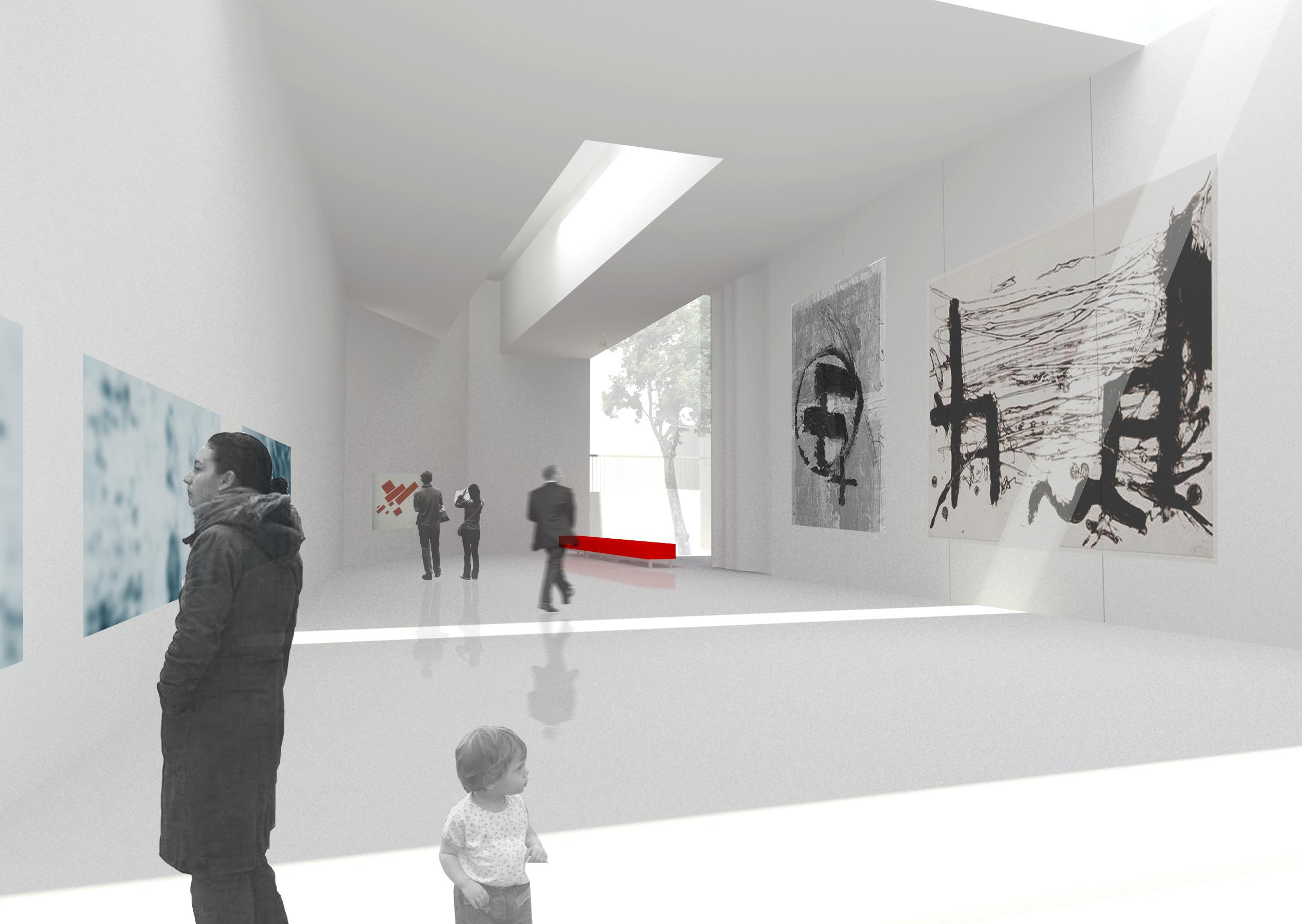 Following this philosophy the proposal included small interventions in the existing educative services and documentation centre and a new building comprising exhibition rooms, conference rooms, administrative area, bookshop/merchandising, bar/restaurant and warehouse for art storage.
