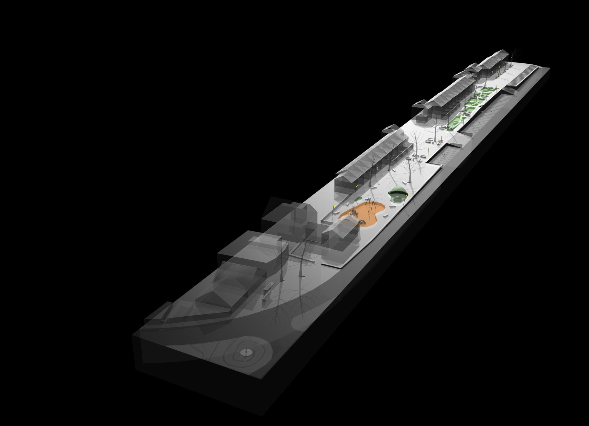 Some changes were later introduced to the first proposal (please refer to image on the next page). These changes resulted in a denser occupation of the lot (please refer to the plans and sketch)