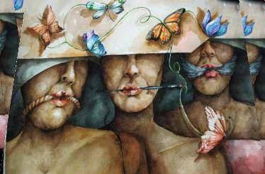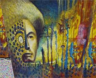 niño, todos sus paisanos pintaban c o n p i n t u r a s naturales. Las fabricaban a partir de piedras molidas y tierra de la región; se di luían con resinas también provenientes que la misma naturaleza les proveía. Coneltiempofueronintroduciendoensutrabajosartesanales pinturas ya industrializadas, “pues los compradores nunca quierenpagarelvalorrealdeuntrabajocontécnicaantigua”.