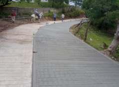 Se pavimentó 604.27 m2 con concreto hidráulico 15 cm de esp. acabado pulido rayado, colado en piedras, f'c=200 kg/cm² con malla electrosoldada.