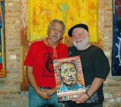 Siempre apoyando a esta organización, el talentoso y apreciado artista Héctor Duarte (izquierda), aquí junto a Bono, poeta.