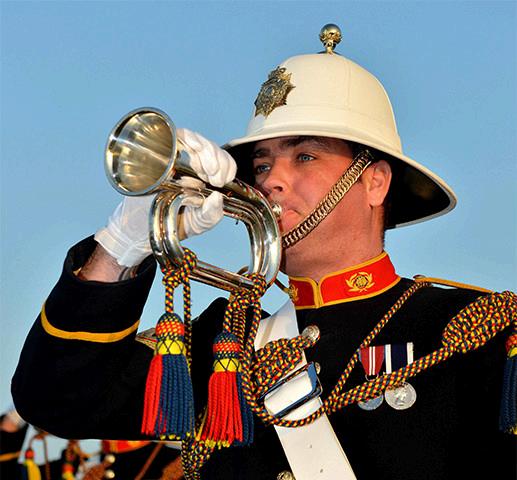 and military personnel, as well as musical performances by a military orchestra