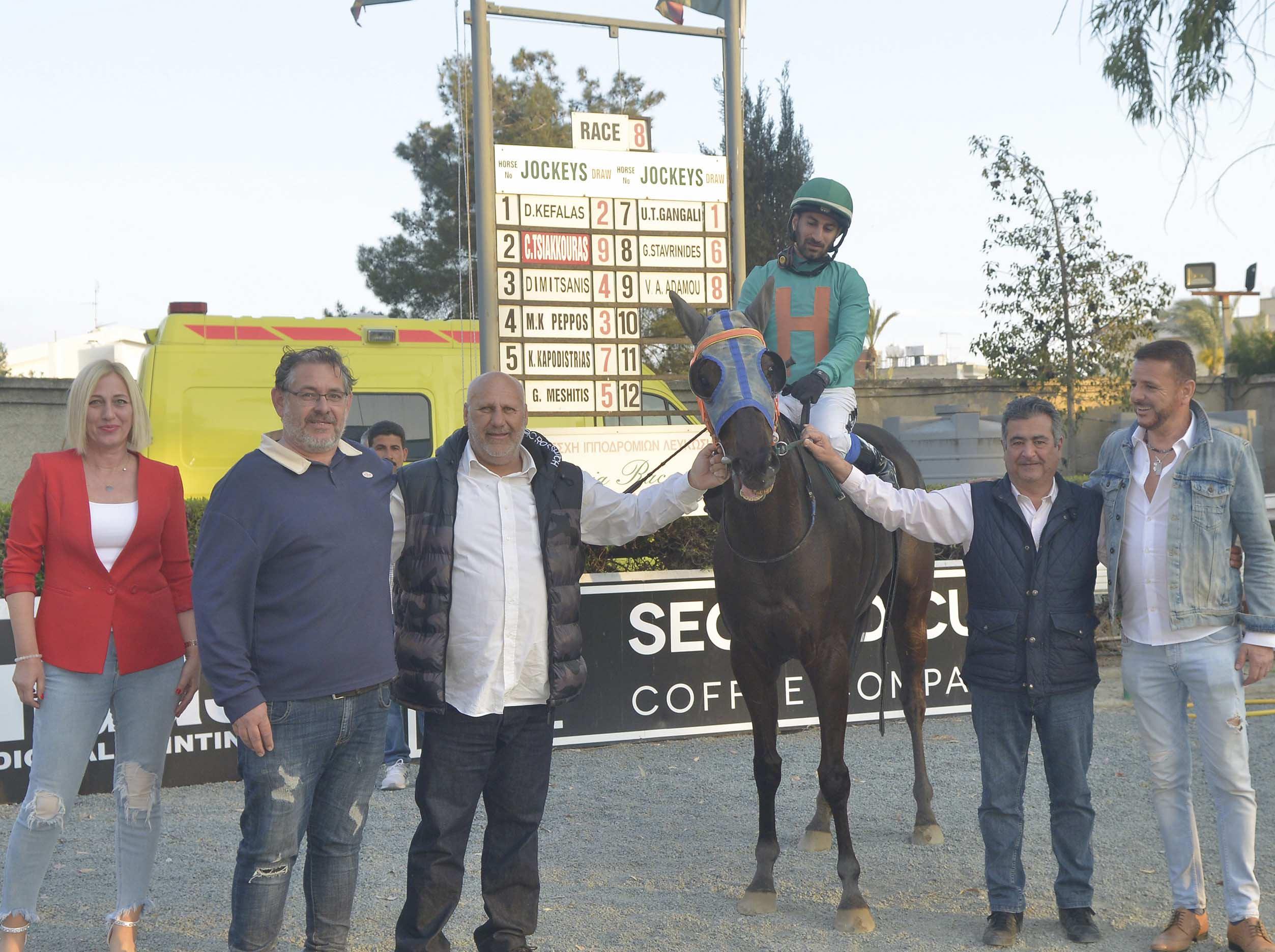 περάσει 1ος το σημείο τερματισμού καταβάλλοντας με ½ μήκος την Σάνταστορμ (Tζ Κρητικού – Κ. Καποδίστριας). Στην 3η θέση είχε τερματίσει ο Καλιάνος, στην 4η η Μαριλενάκι Ρόουζ και στην 5η θέση ο Καπετάν Βαγγέλης.