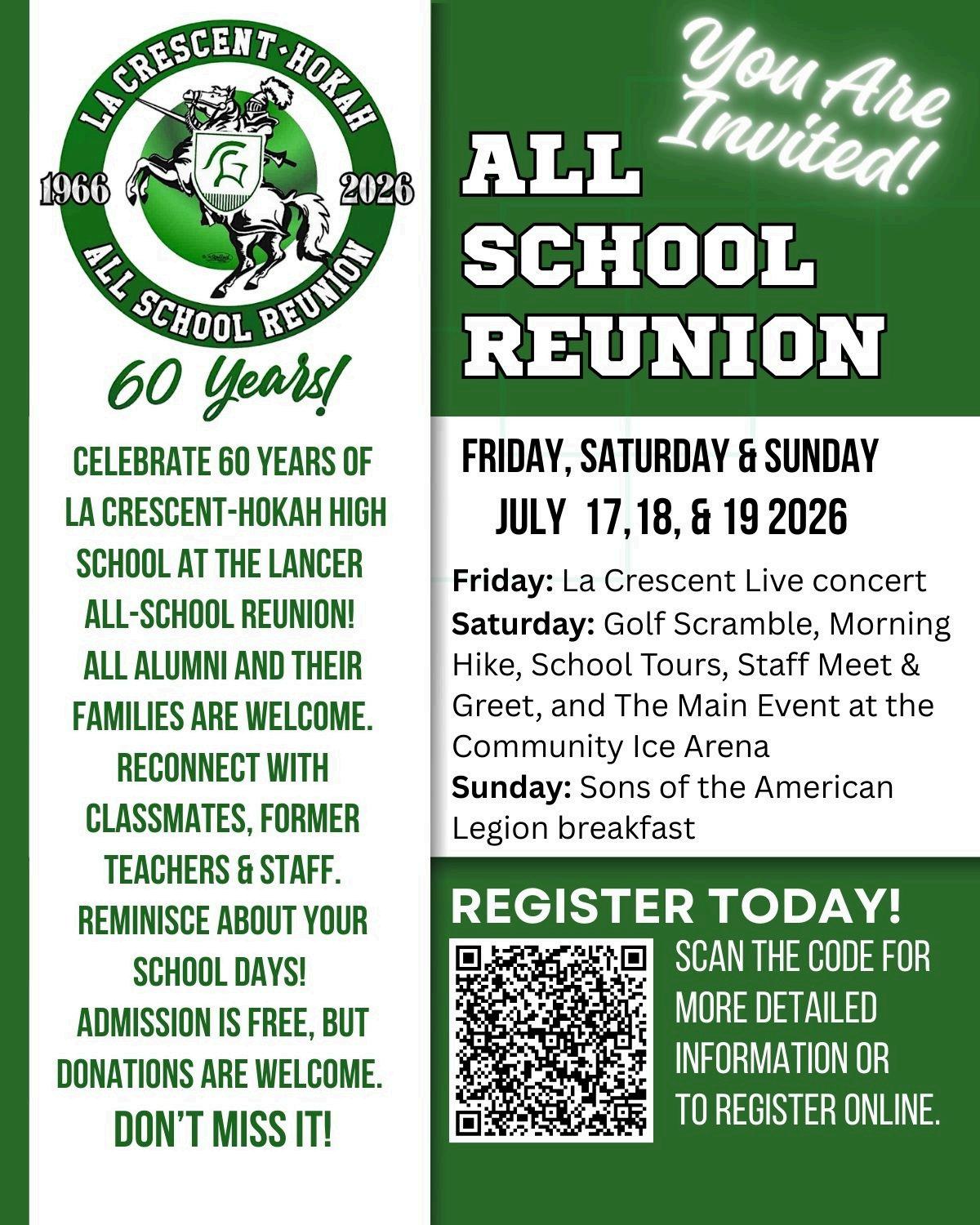 To reserve your date, call Chris Fortsch at City Hall 507-895-2595 or send an email to: cfortsch@cityoflacrescent-mn.gov.