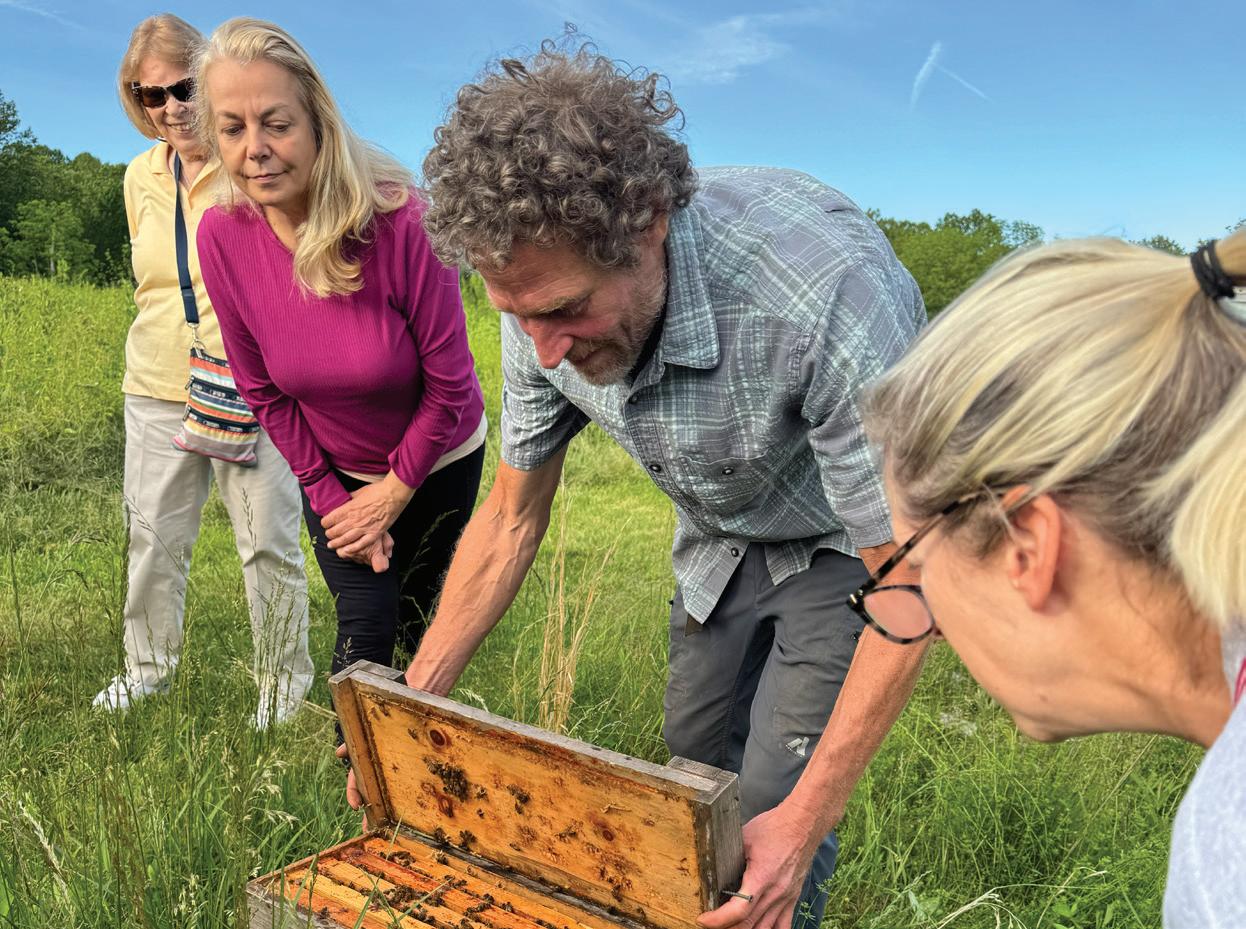 Noah explaining the Rushton Farm bee apiaries for an ECOcentric Experience event. Photos by Blake Goll.