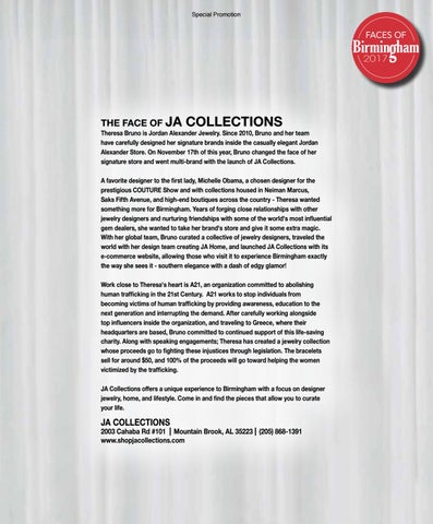 Theresa Bruno is Jordan Alexander Jewelry. Since 2010, Bruno and her team have carefully designed her signature brands inside the casually elegant Jordan Alexander Store. On November 17th of this year, Bruno changed the face of her signature store and went multi-brand with the launch of JA Collections. A favorite designer to the first lady, Michelle Obama, a chosen designer for the prestigious COUTURE Show and with collections housed in Neiman Marcus, Saks Fifth Avenue, and high-end boutiques across the country - Theresa wanted something more for Birmingham. Years of forging close relationships with other jewelry designers and nurturing friendships with some of the world's most influential gem dealers, she wanted to take her brand's store and give it some extra magic. With her global team, Bruno curated a collective of jewelry designers, traveled the world with her design team creating JA Home, and launched JA Collections with its e-commerce website, allowing those who visit it to experience Birmingham exactly the way she sees it - southern elegance with a dash of edgy glamor! Work close to Theresa's heart is A21, an organization committed to abolishing human trafficking in the 21st Century. A21 works to stop individuals from becoming victims of human trafficking by providing awareness, education to the next generation and interrupting the demand. After carefully working alongside top influencers inside the organization, and traveling to Greece, where their headquarters are based, Bruno committed to continued support of this life-saving charity. Along with speaking engagements; Theresa has created a jewelry collection whose proceeds go to fighting these injustices through legislation. The bracelets sell for around $50, and 100% of the proceeds will go toward helping the women victimized by the trafficking. JA Collections offers a unique experience to Birmingham with a focus on designer jewelry, home, and lifestyle. Come in and find the pieces that allow you to curate your life.
