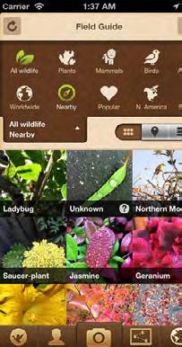 database that all can see. This crowdsourced information helps scientists to track wildlife migrations or the bloom time of plants. The app serves as field guide, map, and a way to share information with friends and with the community at large.