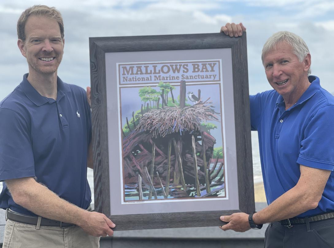 In appreciation of his heartfelt dedication and countless hours working to advocate for the designation of Mallows Bay as the Chesapeake’s first National Marine Sanctuary, Chesapeake Conservancy presented Emeritus Director Charlie Stek with a framed art poster by Maryland artist Max-Karl Winkler.