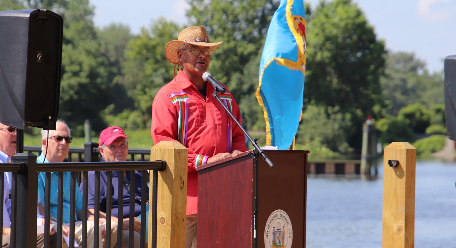 Chief Dennis Coker of the Lenape Indian Tribe at the opening of Oyster House Park