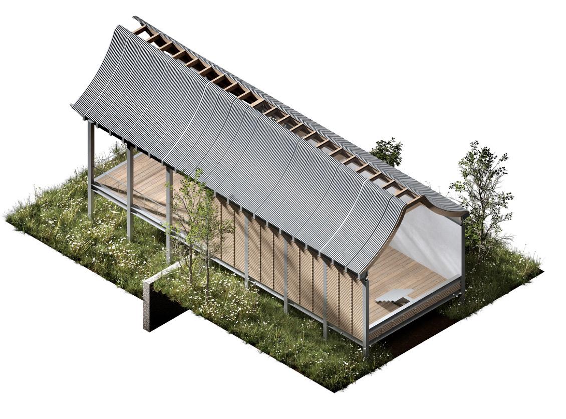 Located within the same footprint of Hyde Park as the original Great Exhibition, a monumental in scale, yet delicate, latticelike structure hangs above a sculpted landscape. The building performs as a clinic and public space, illustrating the themes of transparency and openness through both its framework and function. The structure aims to be a celebration of acceptance; a physical beacon of hope to the millions suffering in silence from mental illness every year.