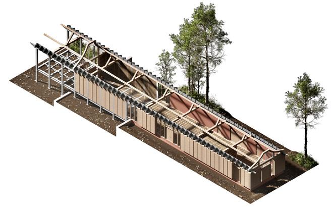 In addition to salvaging the Cockfosters depot materials, My proposal is also to source local naturally occurring materials that can be sustainably harvested (i.e. timber from the plentiful pine/fir woodlands and straw bales grown on adjacent farmland). The combining of harvested material with recycled material presents an opportunity to develop an architectural design that tackles the restrictiveness of the reused component catalog balanced with the expansiveness of new building materials.