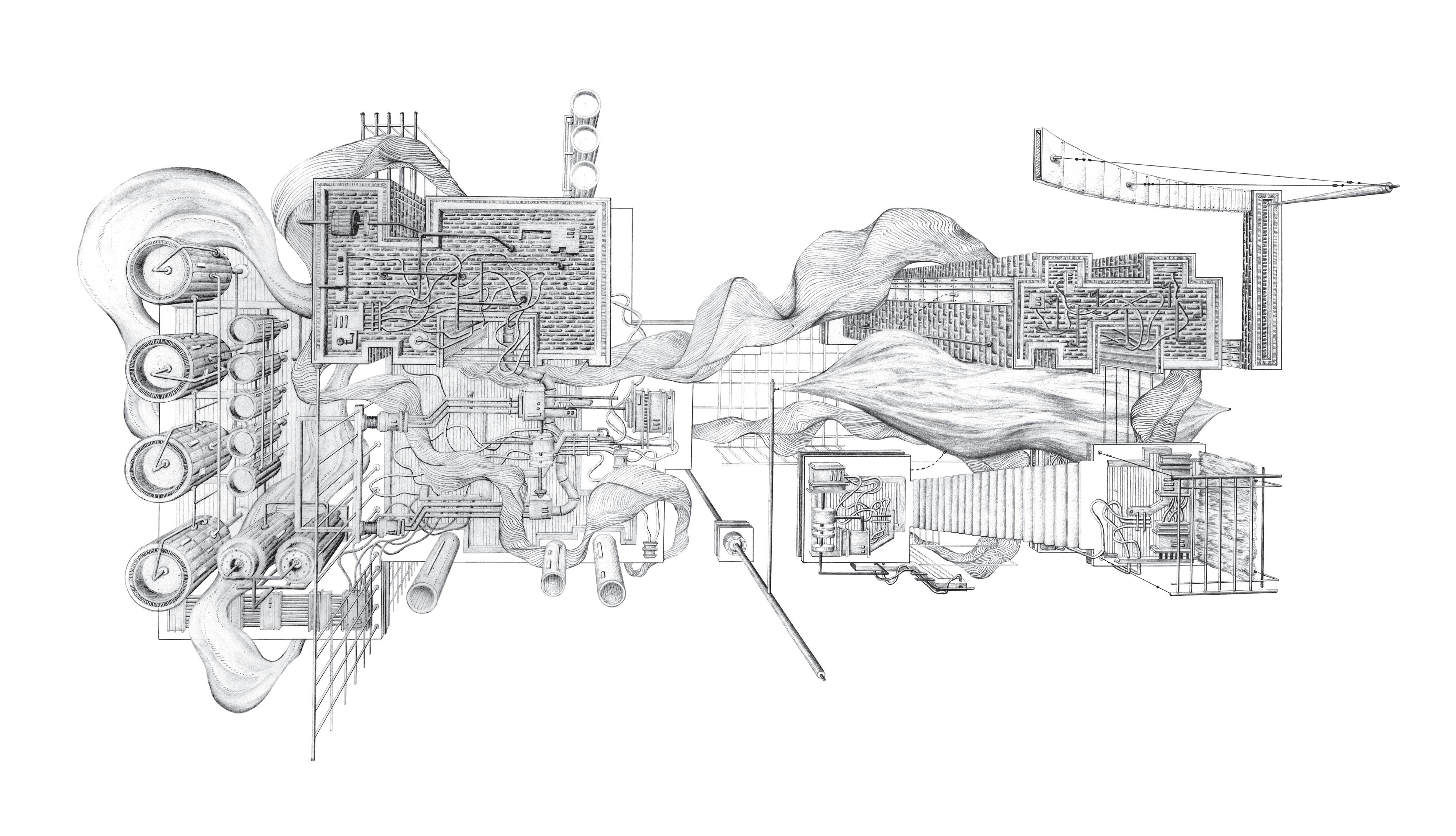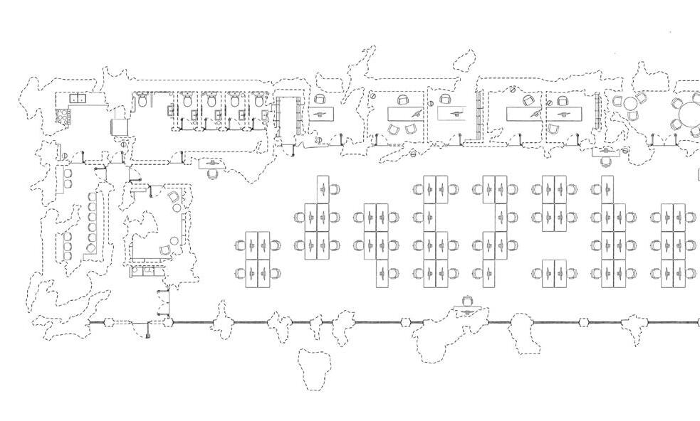 errors in hand drawing - a task that can never be completely efficient - and by using this concept as a foundation, argues that designers are innately inefficient. From here, I design an ‘inefficient’ drawing machine that bases its algorithm on human error probabilities to mimic human inefficiency in drawing production. I produce a typical office floor plan and incorporate the inefficient drawing machine into the design process to investigate how mistakes and ‘inefficiencies’ can create new uses for spaces.