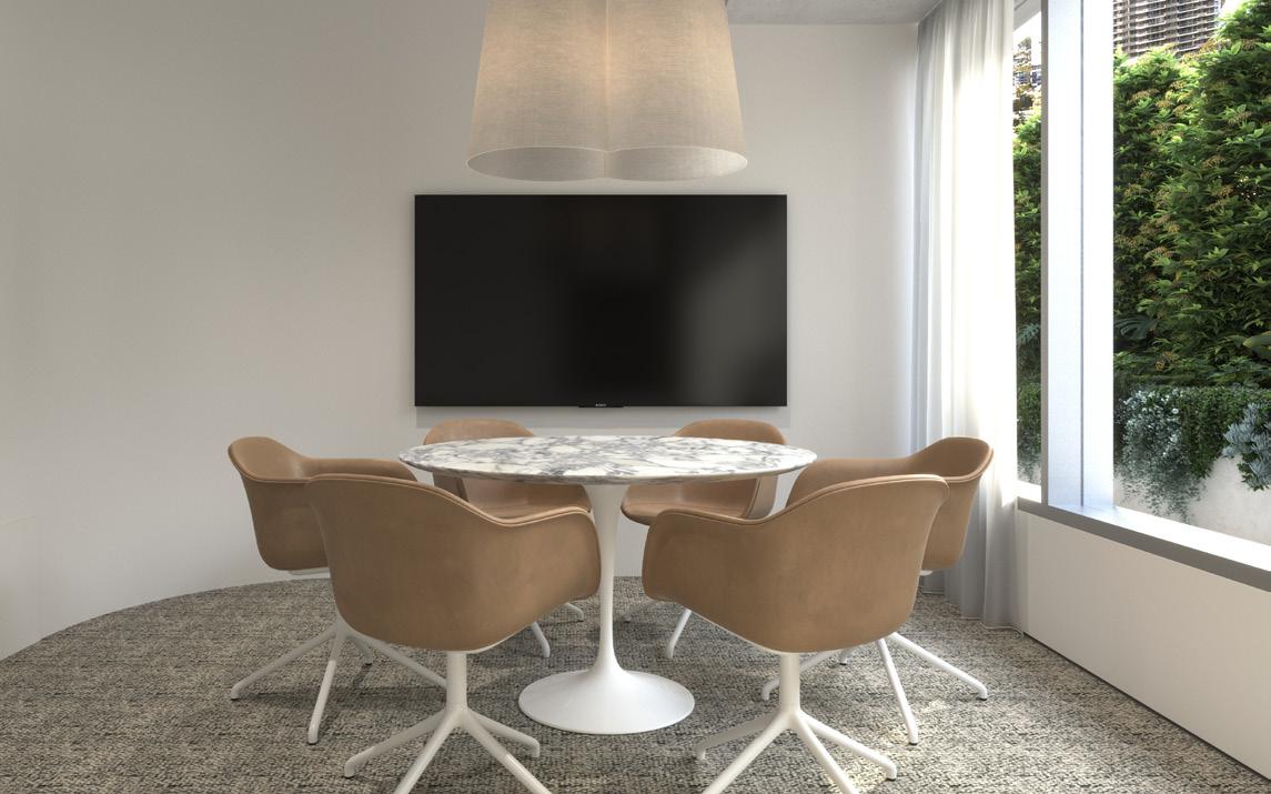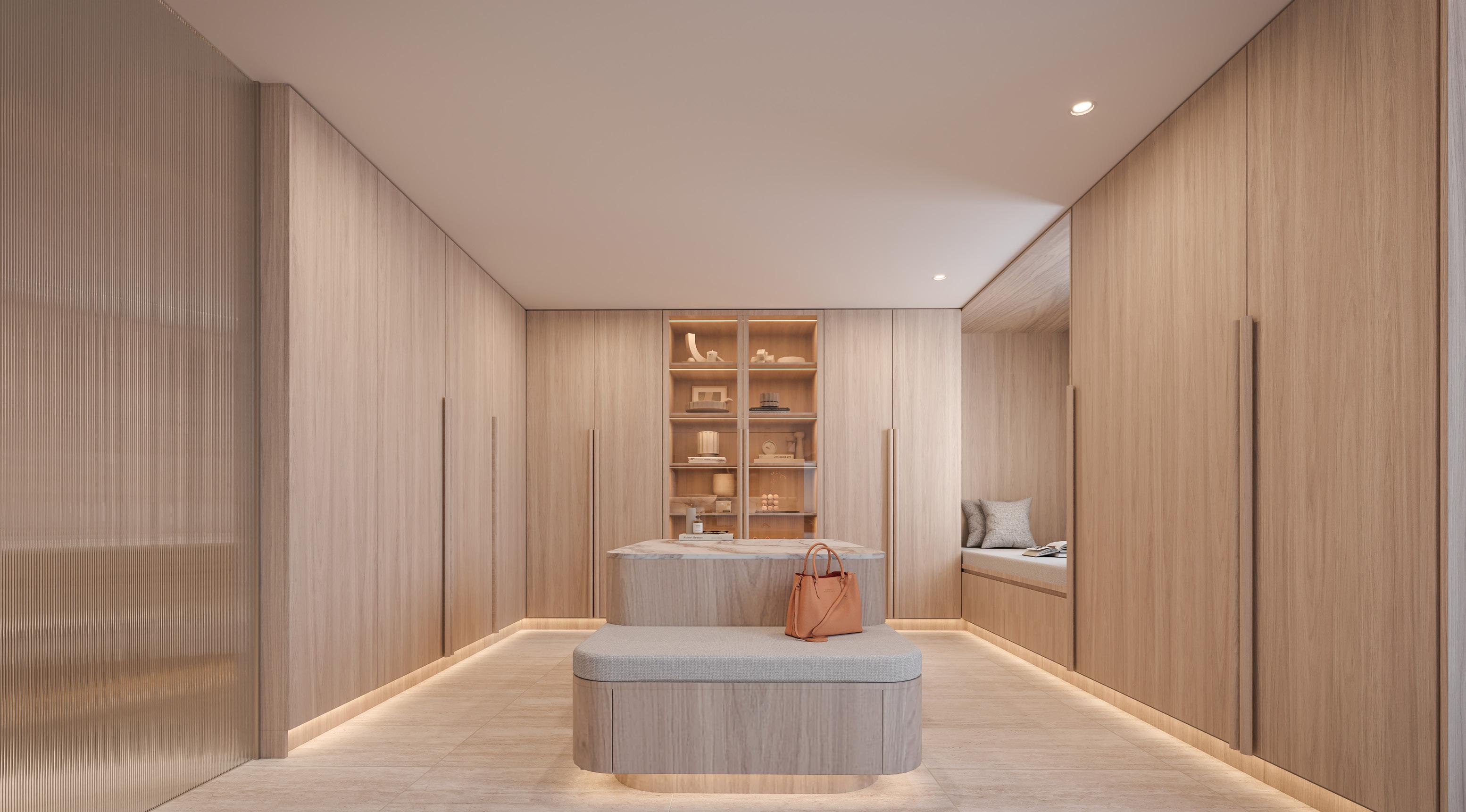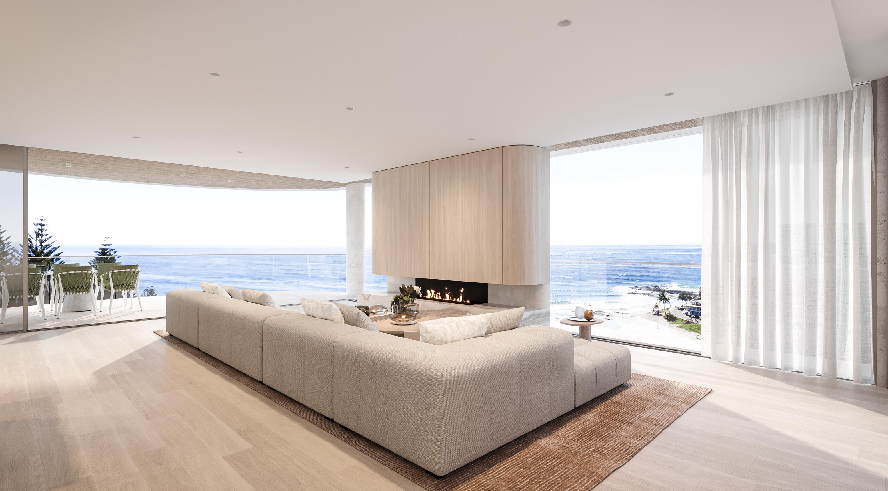 French Oak Engineered Timber Floor Feature Wall Ceiling Fan Dulux Lexicon Half Strip Light to Recess X-Bond Microcement Feature Finish High-Quality Ceiling Fan in White