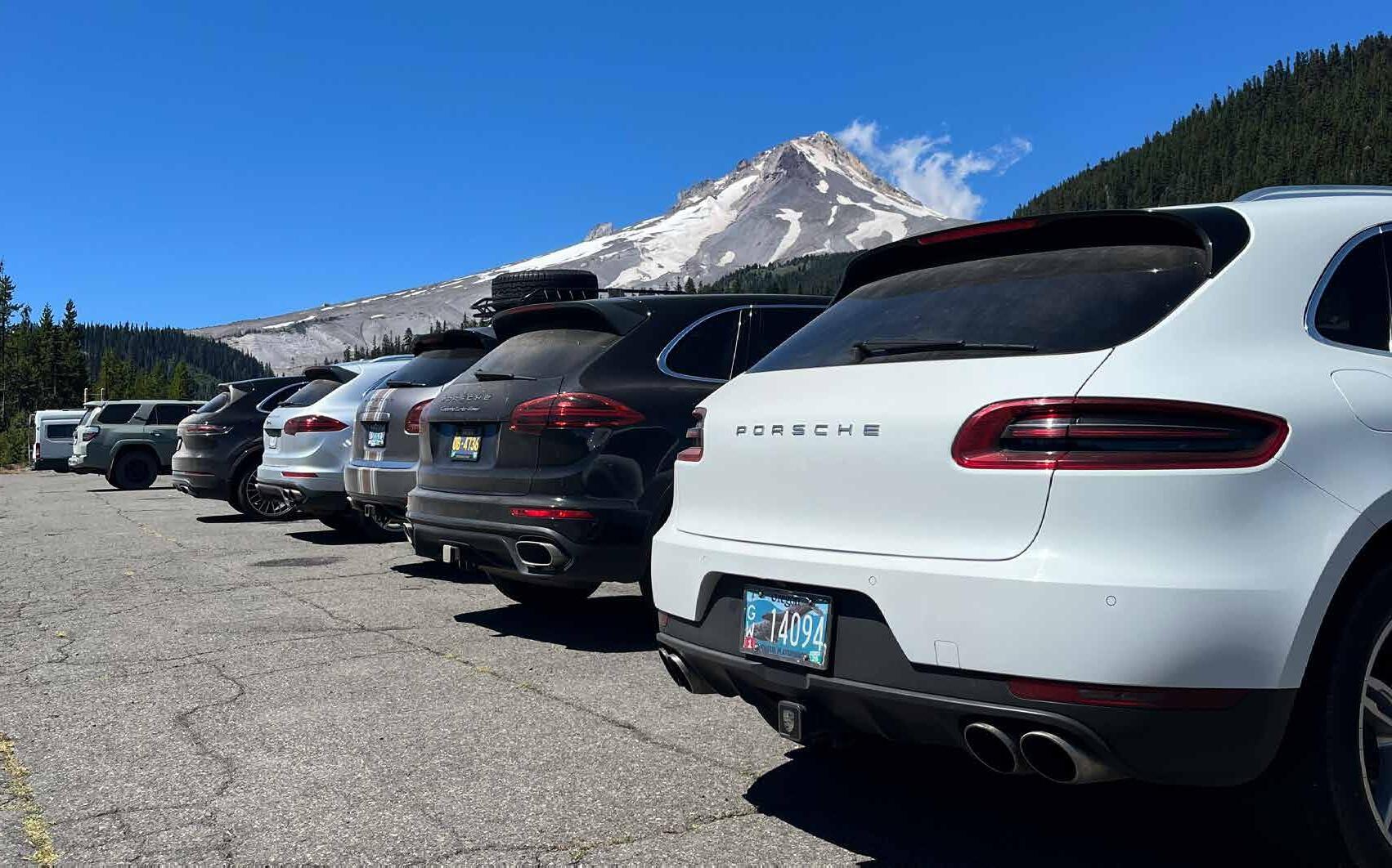 hat a day! The Oregon PCA Ladies hit the road Thursday, August 14, for our midweek Fruit Loop drive, and it couldn’t have been better. With perfect weather and Mt. Hood showing off in full view, we made our way from Troutdale through the scenic twisties around the mountain and into the heart of the Fruit Loop. The 90-mile route gave us plenty of opportunities to enjoy our Porsches the way they were meant to be driven—mostly smooth pavement, winding roads, and just enough elevation to keep it fun. We stopped at spots like Draper Girls, checked out the scenery at Packer and generally soaked up the late-summer goodness: fresh peaches, cherries, and fields of flowers in bloom.