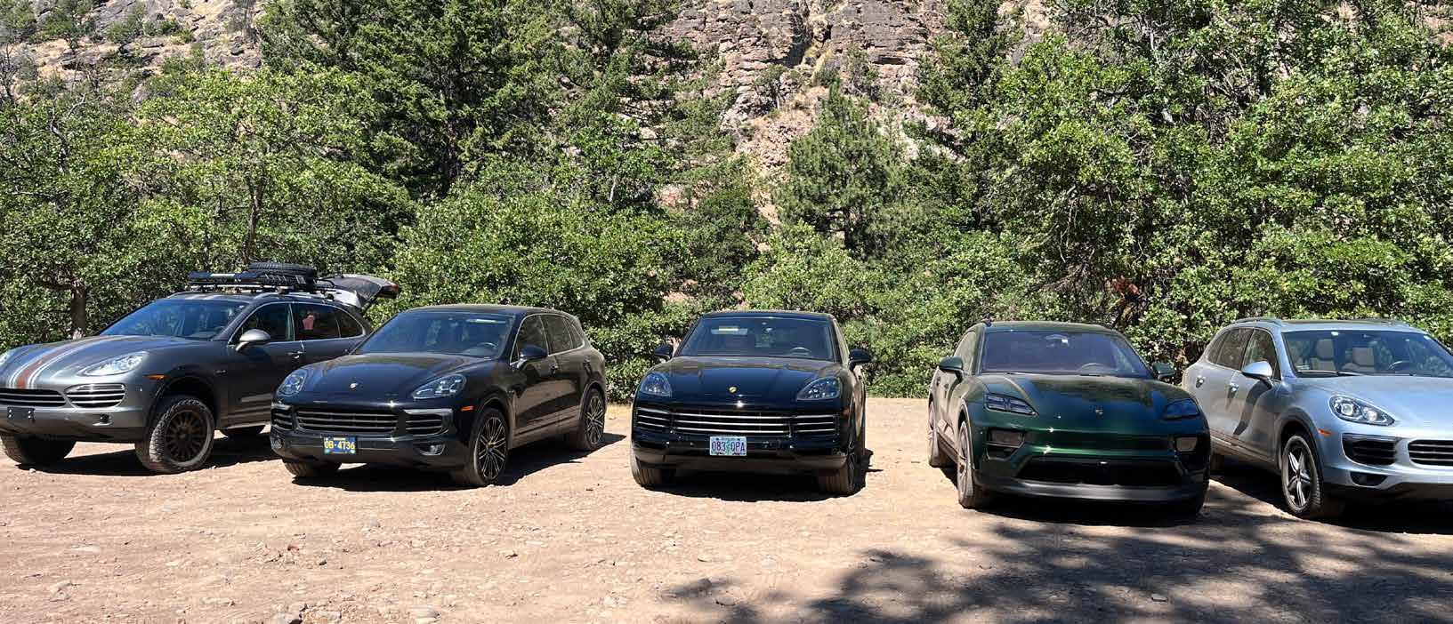 When I first sat down to write this, I thought of a recipe: Take four Cayennes, add two Macans, three experienced clubbers, one sort-of new and two brand-new first drive club members, and blend for our July 26th run over the Maupin Loop. But then I thought, there would be just too many ingredients! Temperatures ranging from 57 at the start to 91 at the river for lunch; spectacular views with every turn; mountains, canyons, rivers, waterfalls, wide open spaces, and the required twists and turns for a fun PCA drive. This one had them all! And let’s not forget a little bit of