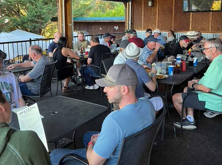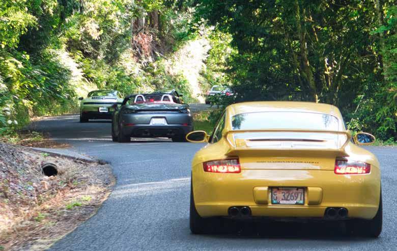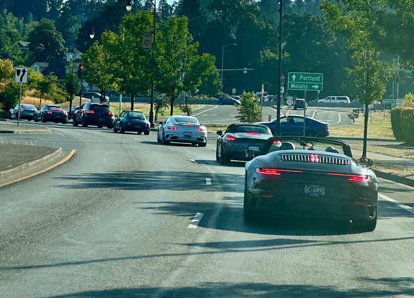The first week of August produced a delightful mid-week gettogether, attracting several new members. Twenty-five Porsches were split into three groups by our Tour Lead, Heinz Holzapfel. The 52-mile route started in North Hillsboro, heading west through Roy, then east through North Plains, up over Skyline to Cornelius Pass, turning back west in almost a complete circle, ending at one of our club’s favorite hang outs, the Helvetia Tavern.