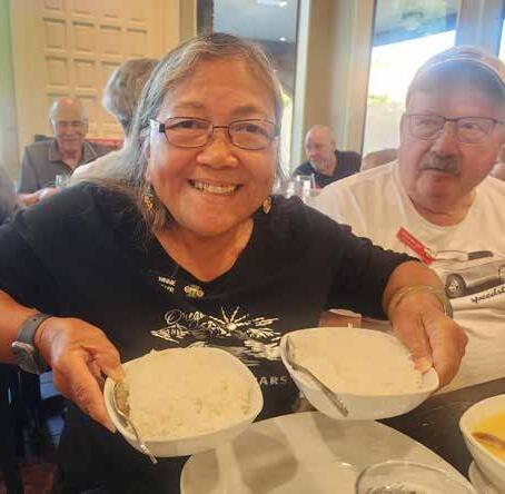 (Above) Winnie Miller loves her rice! (Left) Ina and Gary Feldmann