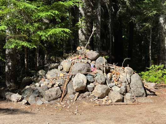 the small gorge. That morning, white-water rafters punted from their starting points along the river and fishing boats unmoored to loll gently on the river waters at the dam at Promontory Marina, folks just like us out to enjoy summer activities. We crossed Memaloose Bridge and passed Fish Creek. Summer traffic on Highway 224 impacted our ability to increase the pace and engage the car to perform as many visitors were pulling over to Day Parks and campgrounds. Once we left our stop at the Ripplebrook Camp Store, however, the driving conditions changed for the better. It was there the Porsches took the fork in the road onto National Forest 46, a road less traveled, and let the horses run. This route provided tight curves, winding stretches, and long straightaways. The road was as varied as the landscape; shady areas where the trees hung over the road, then more expansive areas that showed mountains everywhere and the vast impact of the 2020 burn. Wildflowers were bursting with color and insects were actively flying into the windshield. Standing above it all was the commanding and unmovable presence of Mt. Jefferson, tall, remarkably serene, and still covered with snow.