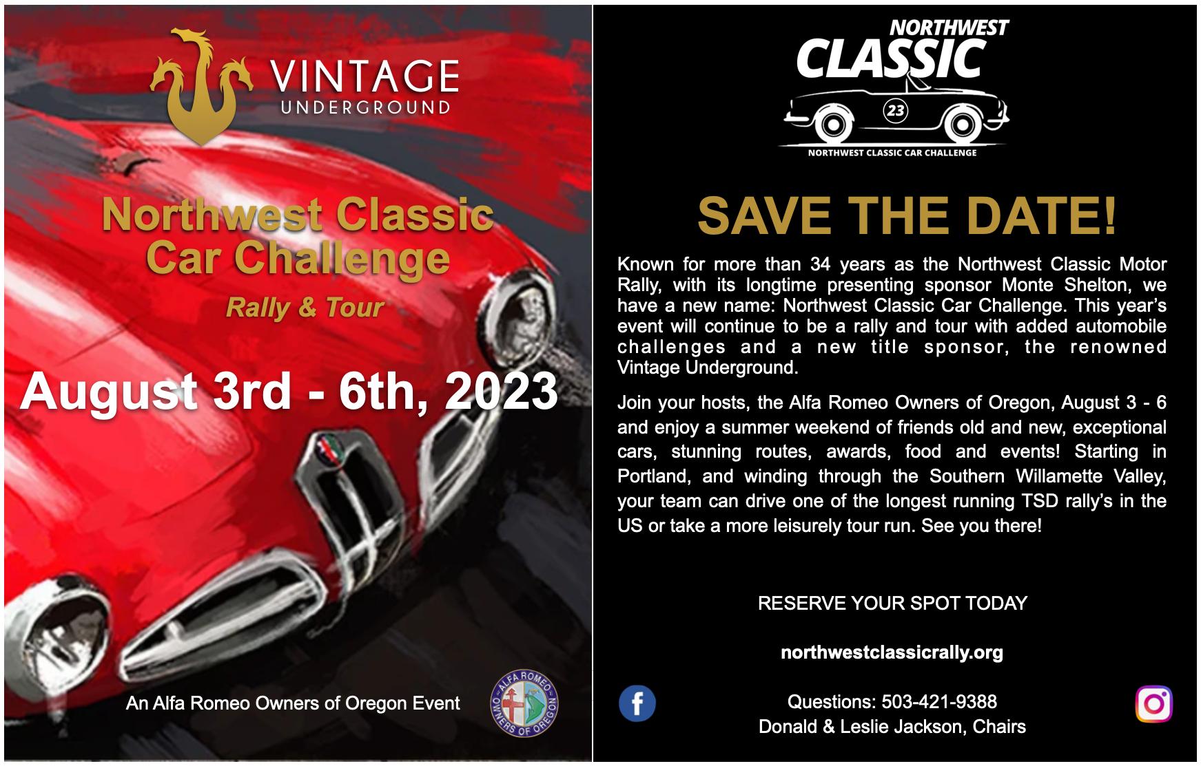 MAY 19-21 Fri - Sun Walla Walla Tour 13 Saturday Arrive and Drive 17 Wednesday Dinner Gathering 20 Saturday Covered Bridge Tour 24 Wednesday Ladies ONLY drive 24 Thurs Midweek Drive 27 Saturday SUV Drive JUNE 3 Saturday Introduction to Arrive and Drives 3 Saturday Electric Car Drive 10 Saturday Arrive and Drive 20-21-22 Tues Wed or Thurs Midweek Drive 24 Saturday SUV Drive 22-26 Thurs-Mon Northwest Passage