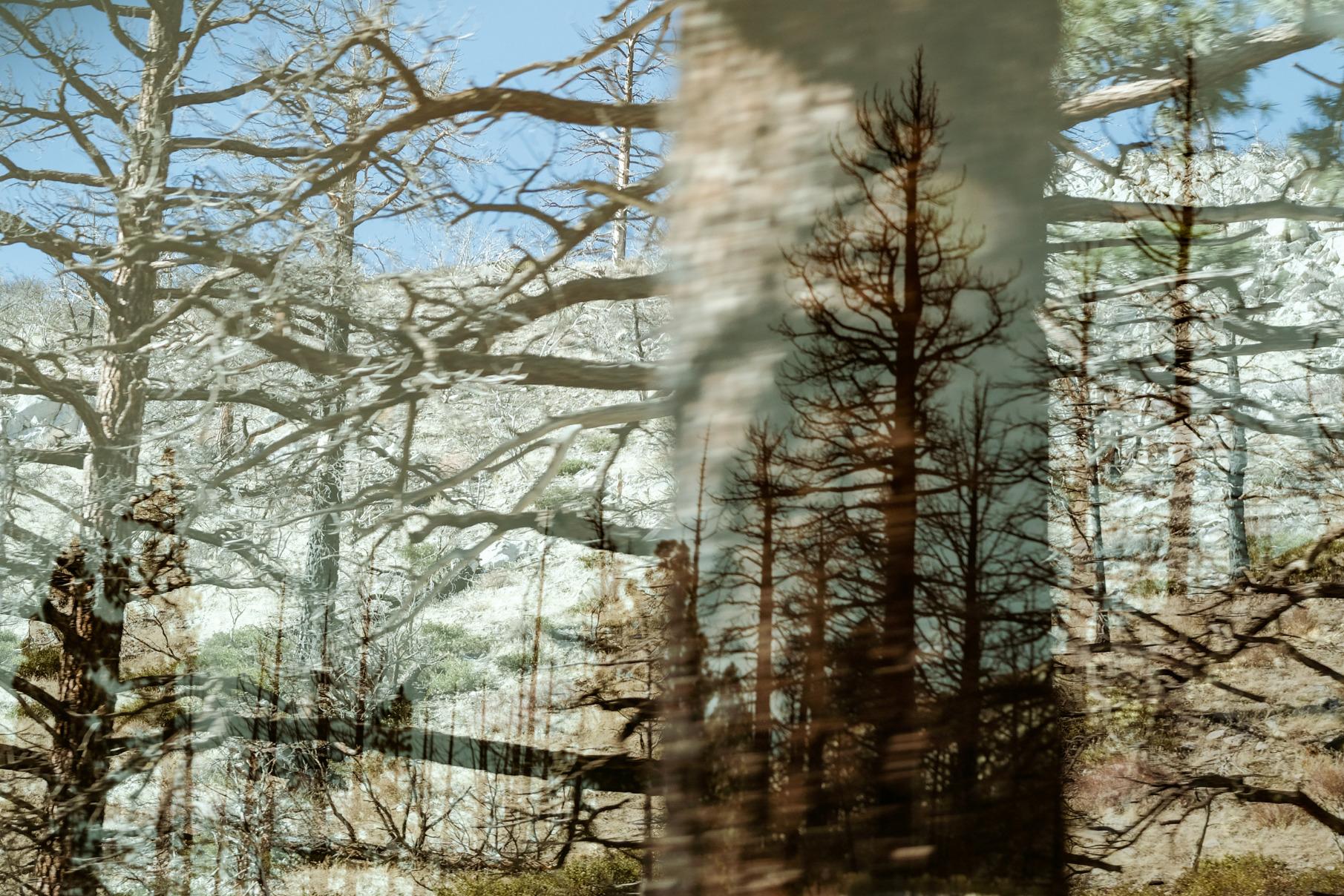 The following images are from Highway 395 on a recent trip from Los Angeles up to Lake Tahoe and back. They were shot as in camera double exposures while my husband was driving. The camera was a Fuji XT2.