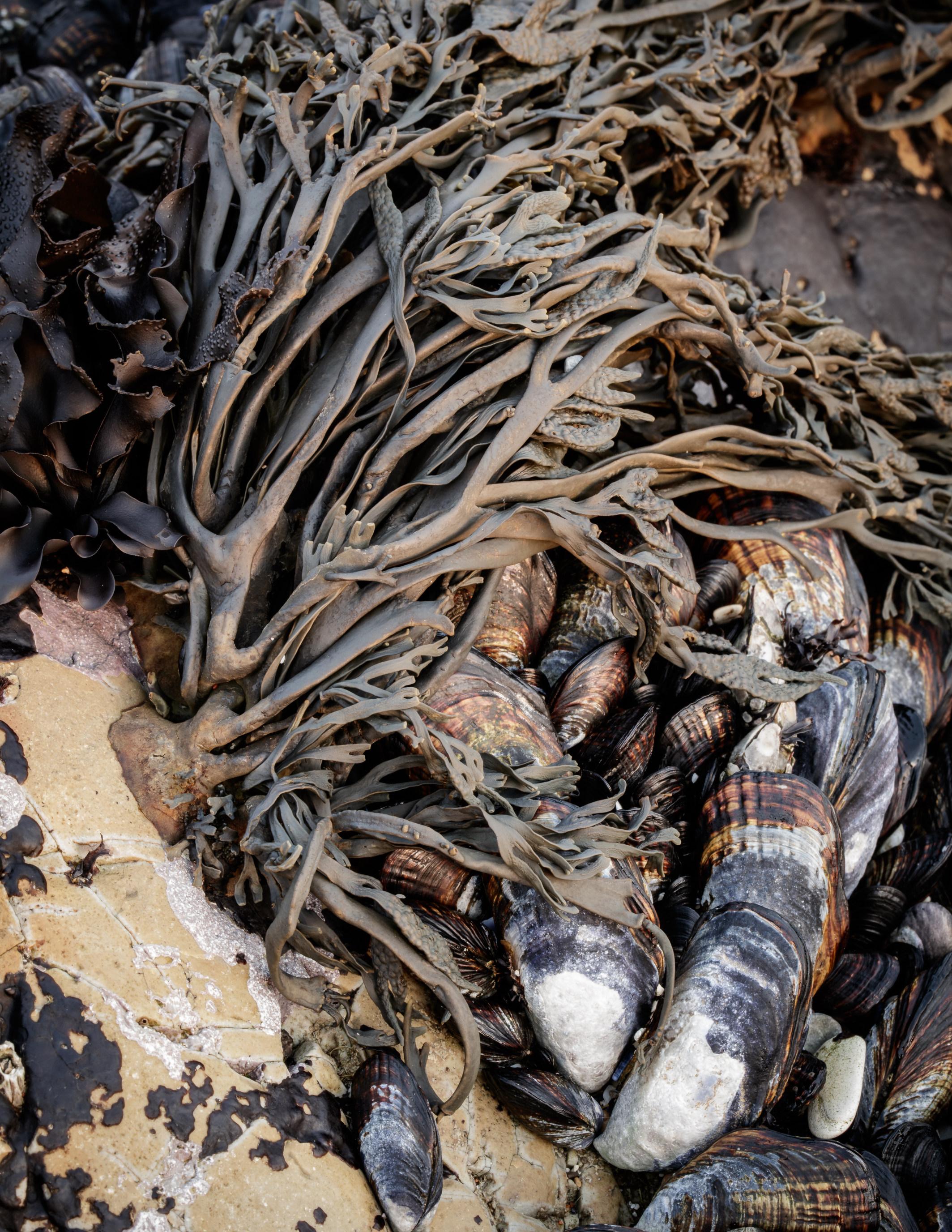 sun, the mist in the air, and gusts of wind. You will hear waves as they roll toward the shore and see plant- and animal- marine life you will find nowhere else. As you scan the rocks and pools, something catches your eye, like a flash of color or motion. Maybe it is a beautifully placed sea star in a bed of mussels, a colorful sea anemone with tentacles splayed like flower petals or a nudibranch using a branch of kelp as a path to find its next meal.