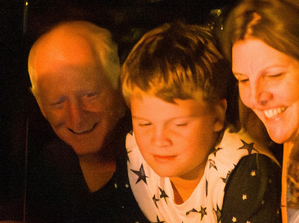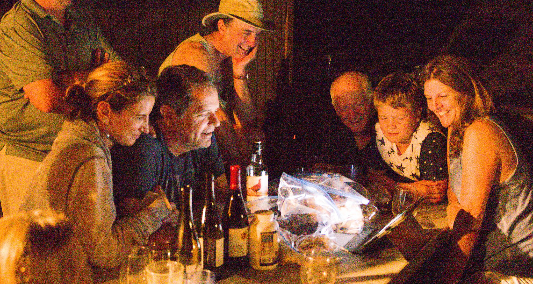 I tried these tools out on a photograph I shot on vacation a few years ago. It’s a modern “gather round the hearth” tableau, with everyone watching a video produced by one of the children. It was an hour after sundown on the east side of a cabin in the woods, and the scene was lit by just two sources: a porch light and the iPad on which the video was displayed. My exposure was 1/20th sec @ f2.8, ISO 25600. The proud father’s face is visible in the shadow at the far end of the table.