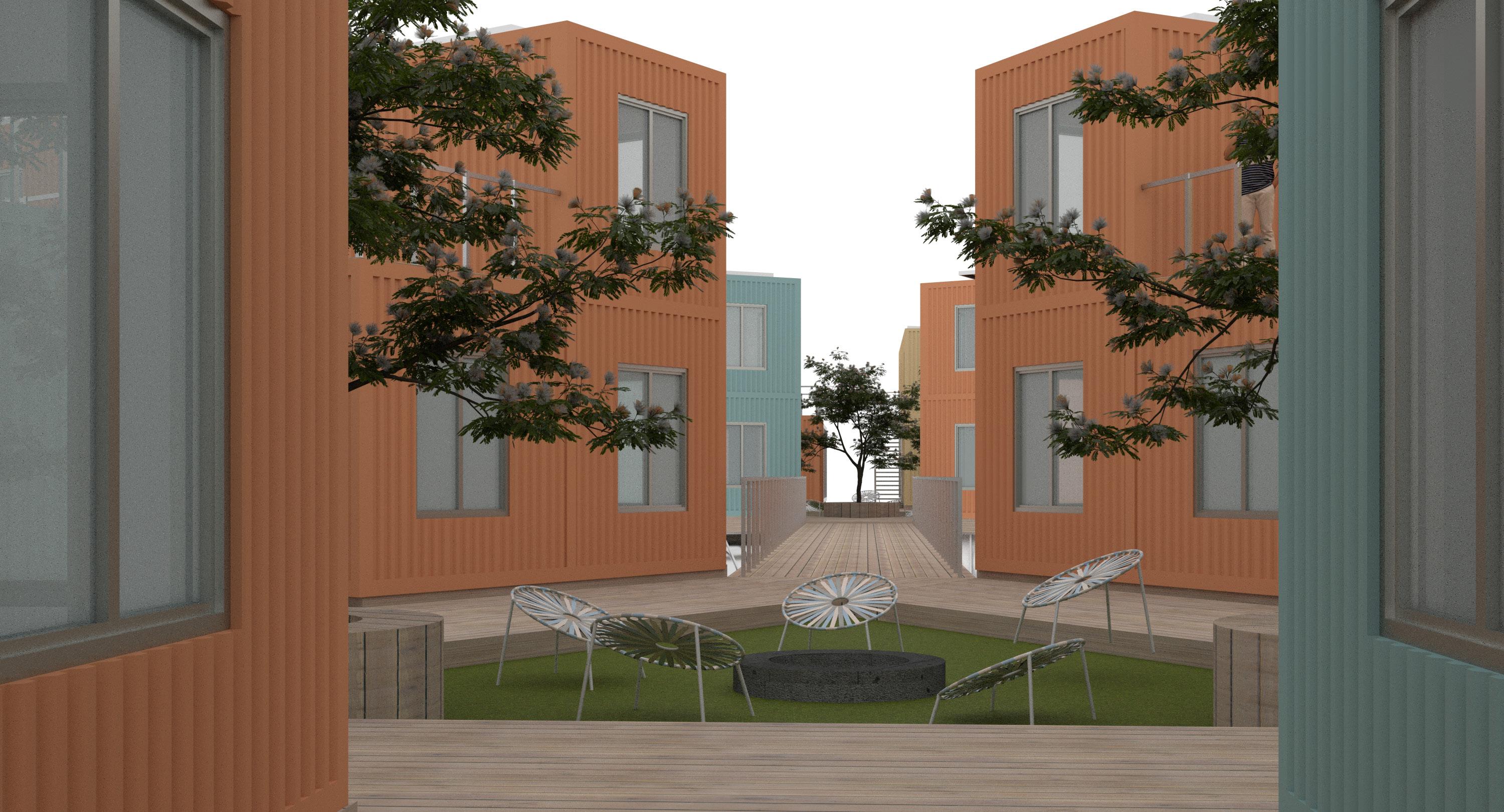 L’implantation sur la baie de Biscayne à Miami repose sur un concept de modularité des unités et des espaces publics qui peuvent être construits rapidement et efficacement en utilisant deux types de conteneurs maritimes, 3mx12m et 3mx6m ; la qualité incrémentale du design permet de le développer dans le temps pour accueillir plus de personnes. En réutilisant les conteneurs d’expédition pour la structure, les matériaux sont donc durables et plus abordables que les matériaux traditionnels, ainsi que les plateformes en bois pour les quais et les passages. Les unités sont également autosuffisantes grâce au recyclage de l’eau naturelle dans deux réservoirs d’eau : un réservoir d’eau propre filtrée et un réservoir d’eau grise réutilisée, ainsi qu’un biodigesteur pour décomposer les déchets humains. Les unités produisent également leur propre électricité grâce à des panneaux photovoltaïques fixés sur les toits.
