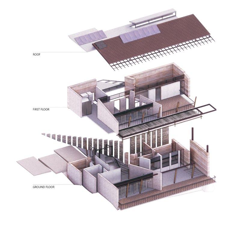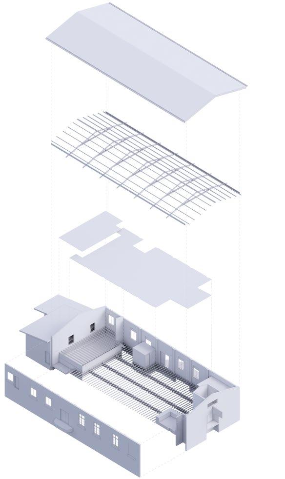 was involved in this project from the outset, initially helping to produce a comprehensive heritage report and a schedule of maintenance for the existing fabric. Using survey data and onsite measurements, I developed a threedimensional model of the building in Autodesk Revit. This included detailing complex elements such as the roof truss system, wall buildups, and parametric families for the different door and window types. The resulting model enabled me to draft documentation drawings for inclusion in a feasibility report, which highlighted key issues needing to be addressed, particularly structural concerns, building code non-compliance, fire and asbestos risks, and barriers to universal access.