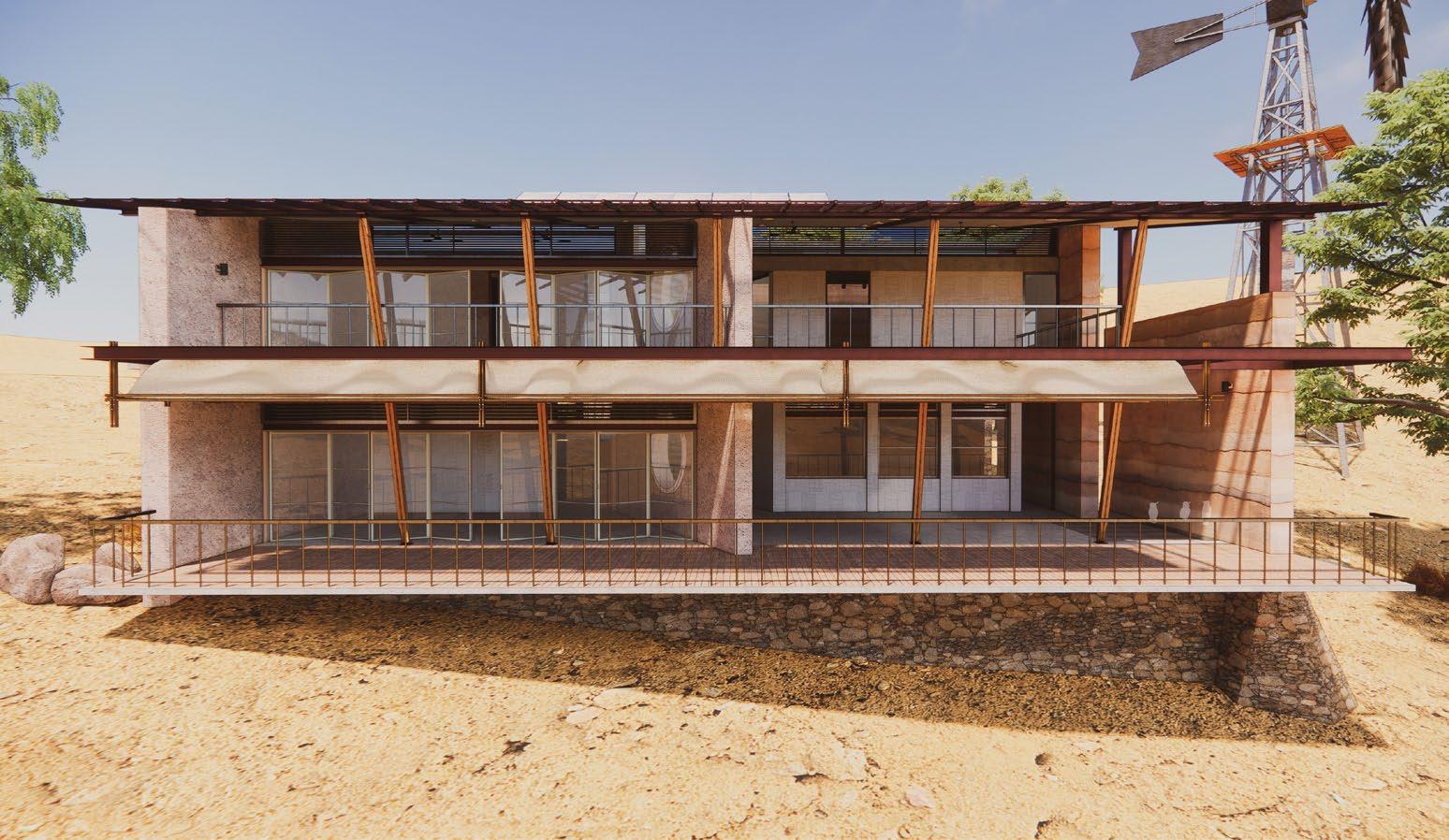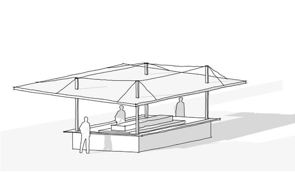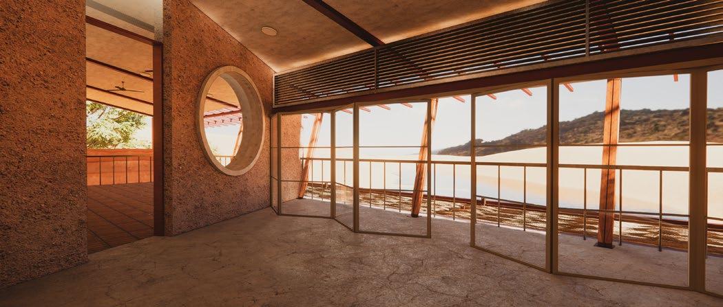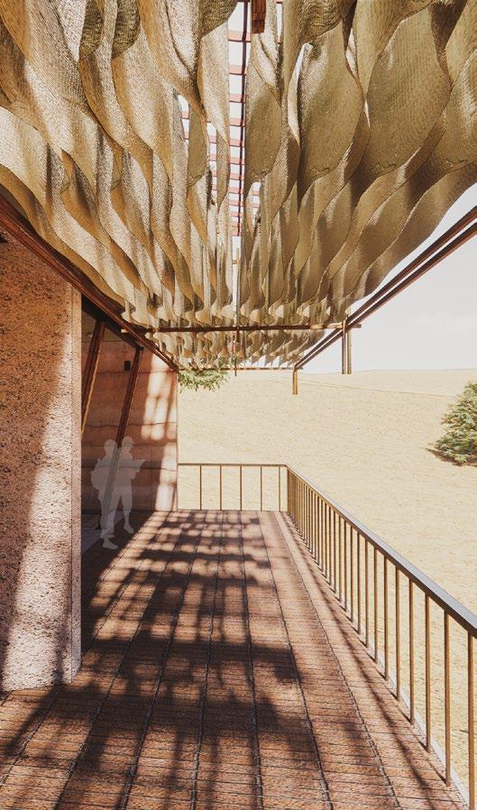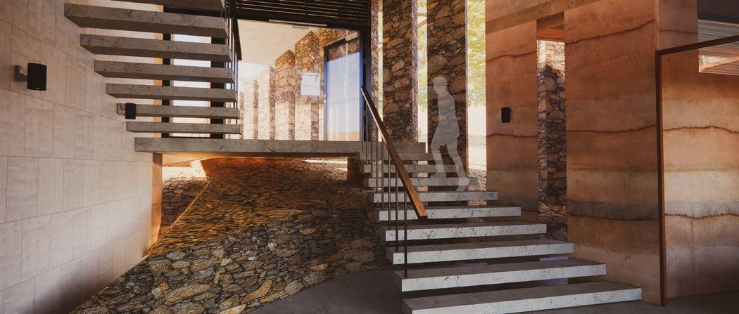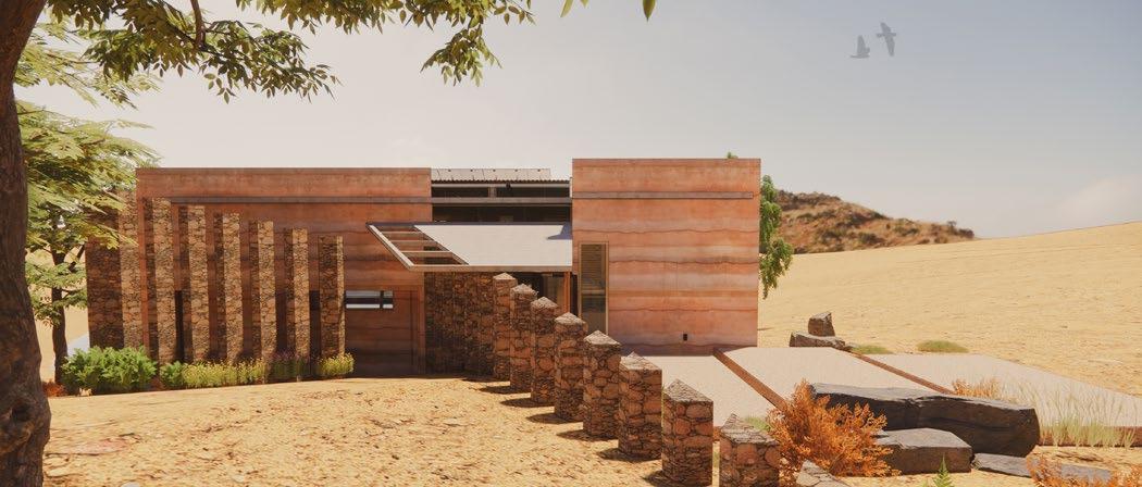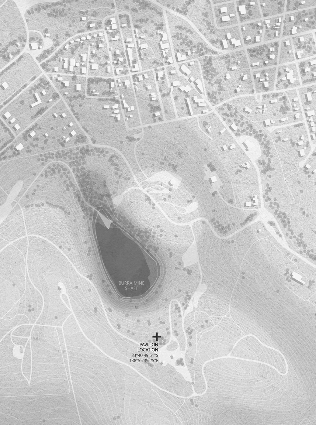The culmination of in-depth 63-page research study on climatefocused sustainable design, this pavilion design serves as a lookout, activity space, and community centre in the historic mining town of Burra, South Australia.
