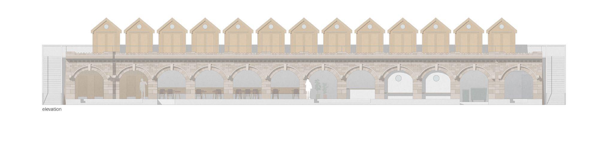 The Alum Chine Cloister, a historic twelve-arched shelter that faces southwards onto Bournemouth beach, was originally constructed in the 1910s as an early example of concrete construction. However, due to its age and exposure to the seafront, the cloister has suffered from serious structural damage and water ingress, leading to its closure to the public since February 2019. In response, I was commissioned to produce a feasibility concept proposal for the Bournemouth, Christchurch and Poole Council which would restore and redevelop the structure.
