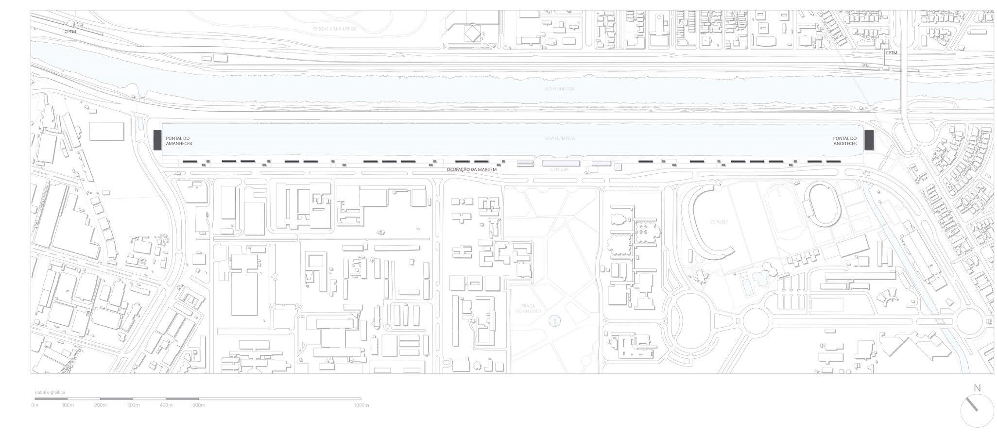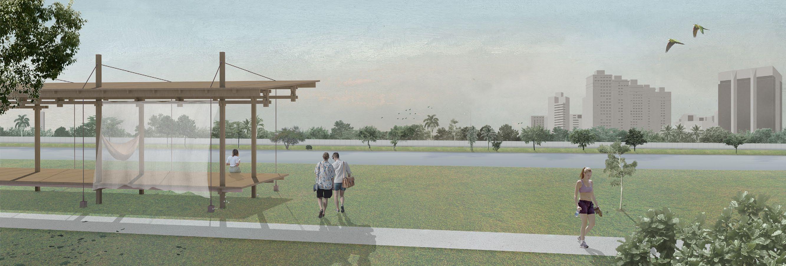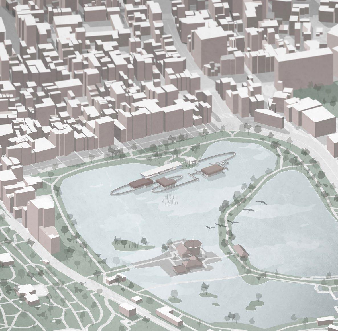 This project aimed to redevelop the Raia Olímpica, an extensive two-kilometrelong rowing lane situated inside of the Universidade de São Paulo and parallel to the Rio Pinheiros. Neglected and polluted, the Raia currently remains an underused space on the fringe of the campus, yet holds immense potential as a recreational space for students, staff, and the wider public.