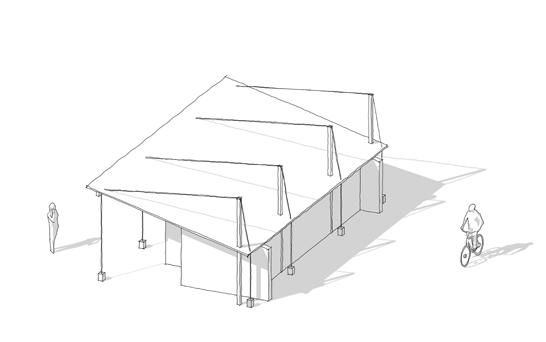 Whilst the abrigo shelters and kiosk facilities were designed to match the scale direct scale of the individual user and the existing foliage, activity in the bandejão cafeterias takes place under a single large roof and would host additional facilities of student bars and a bakery. Each structure is self-supported by a system of tension cables and would be constructed primarily from recycled materials. The design for each of the structures drew upon influences of Japanese traditional architecture and the ideas of cyclical renewal and organic growth owing to both the history of Japanese immigration in São Paulo, as well as the structures of the indigenous Yanomami people and that of Afuá, in the state of Pará.