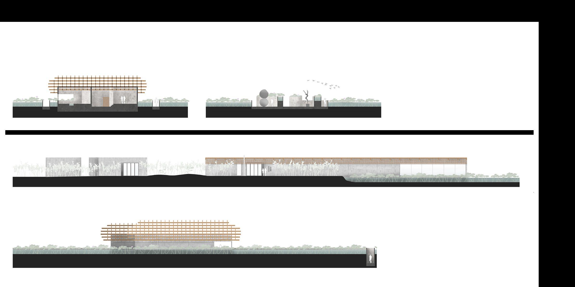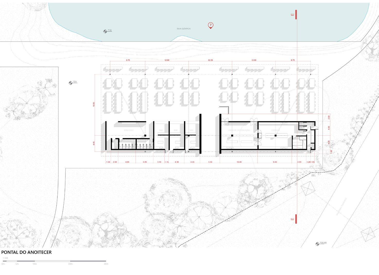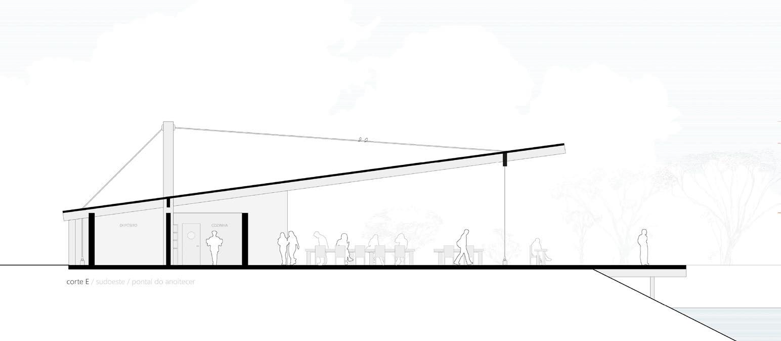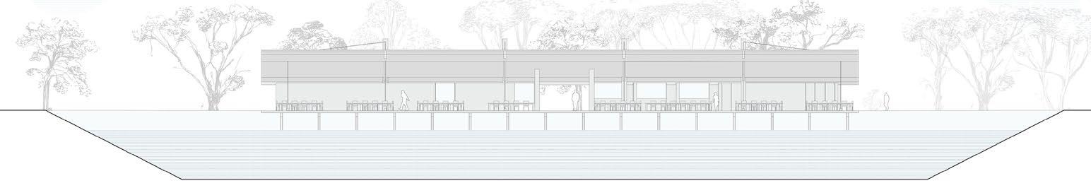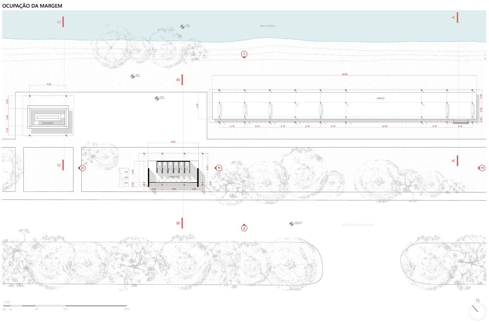 Following extensive research and consultation, the design was realised as two bandejão communal student cafeterias on each end of the Raia (o pontal do amanhecer and o pontal do anoitecer), with the southern bank ‘occupied’ by a series of simple wooden open shelters, kiosks, and bathroom facilities. These lightweight flexible structures take advantage of São Paulo’s humid subtropical climate, with the abrigo shelters providing a place to sit, gather, relax, and reflect. In this manner, one would be able to enjoy the Raia much as one would stroll, cycle, or jog along the beachfront of Rio de Janeiro’s Ipanema or Copacabana beaches. Through a decided minimalist approach the project challenges established notions of ‘habitation’ or ‘occupation’, and instead prioritises sustainable architecture design and practice.