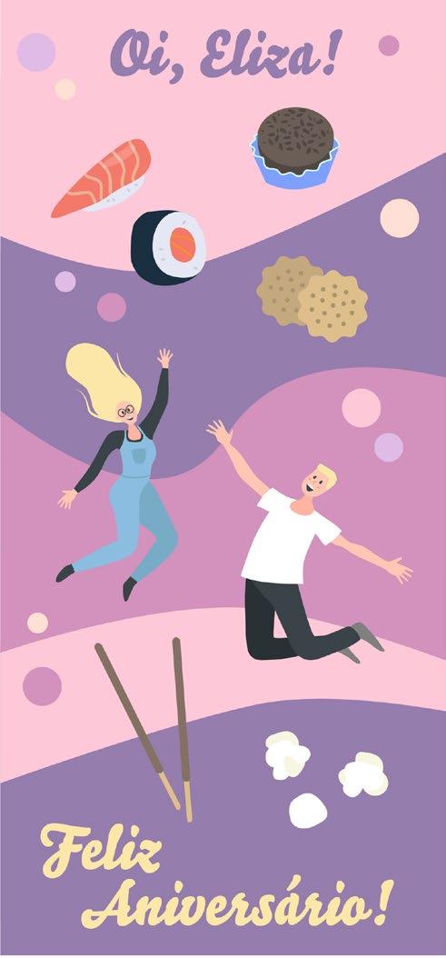 A private commission created for display at a birthday celebration, featuring a vector illustration of the celebrant, her partner, and a collection of her favourite foods, all set against a vibrant, colourful background. The design was tailored to reflect her personality and tastes, making it a personal and celebratory centrepiece for the event.